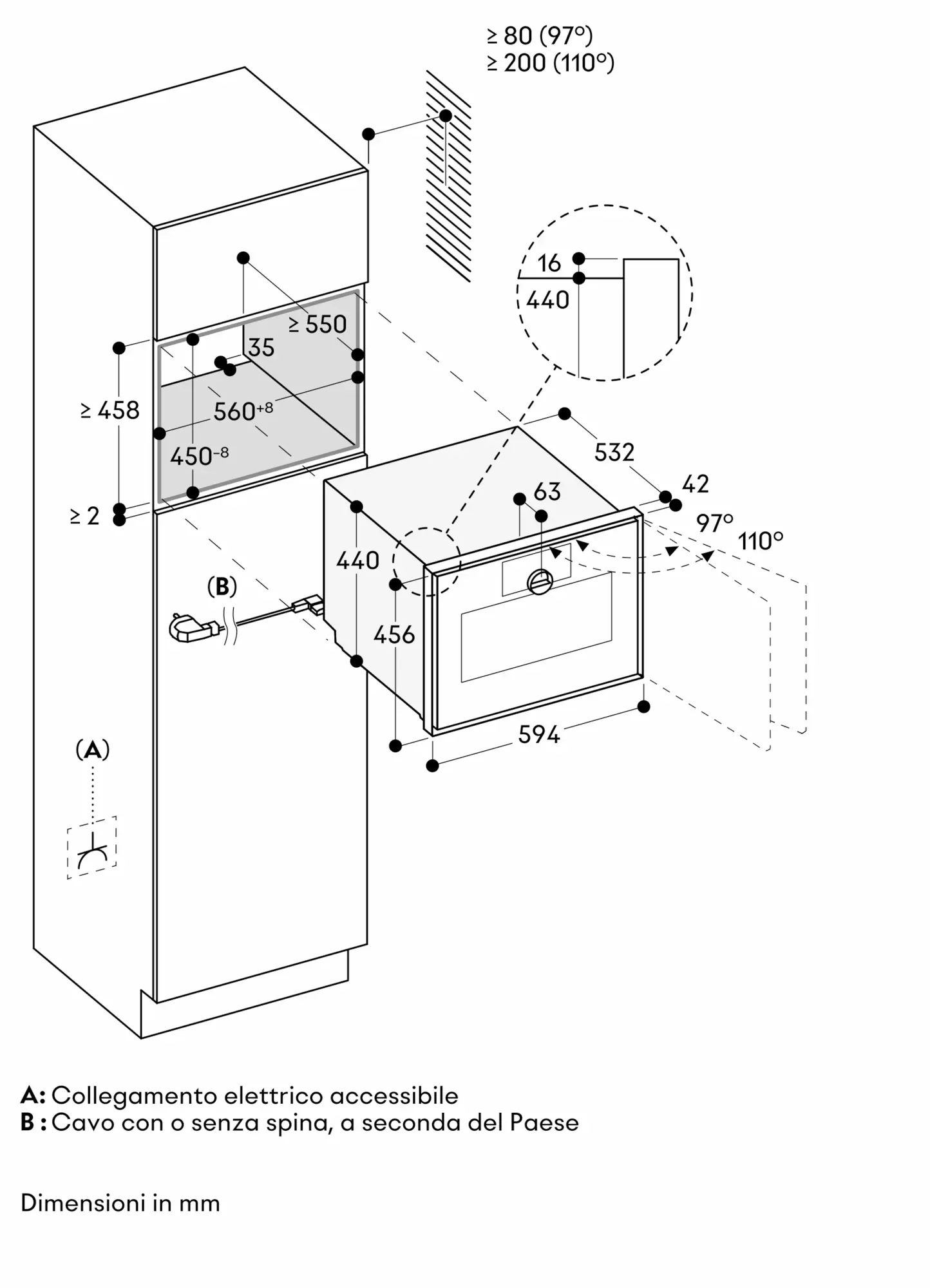 La scatola di connessione deve essere accessibile e situata all'esterno della nicchia di installazione.