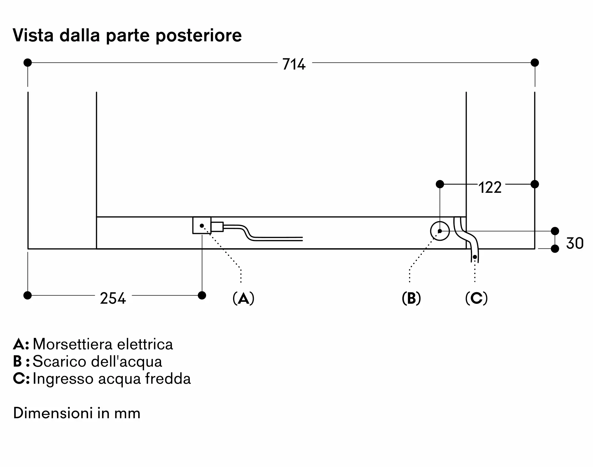 Il collegamento per il tubo di carico dell'acqua deve sempre essere accessibile e mai posizionato dietro l' apparecchio.