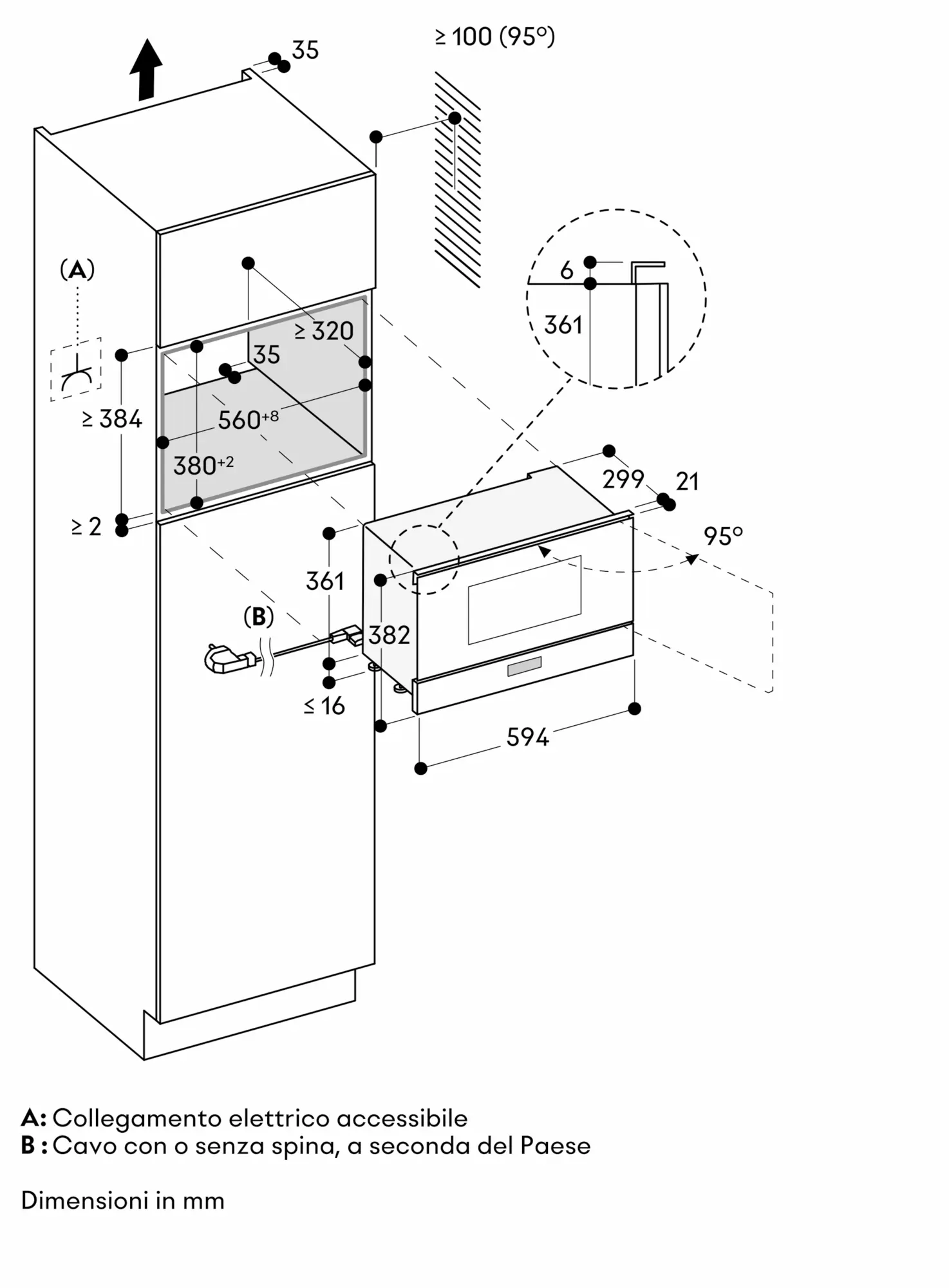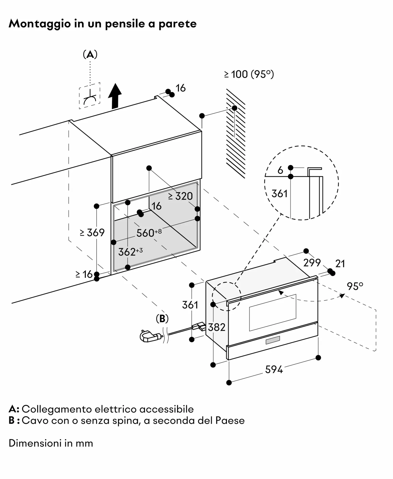 Montaggio sopra un forno con un pavimento di mobili standard o il pavimento intermedio GA 601 010.