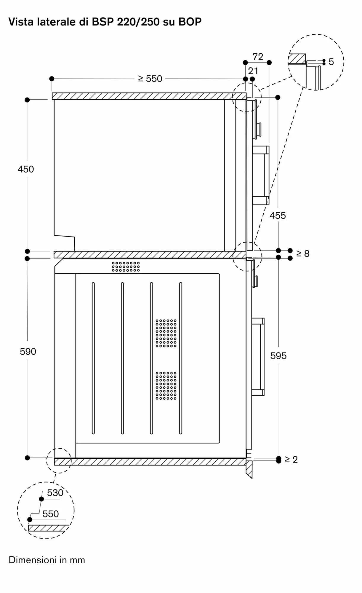 Prevedere uno spazio laterale tra forno e pannello del mobile di min. 5 mm.
