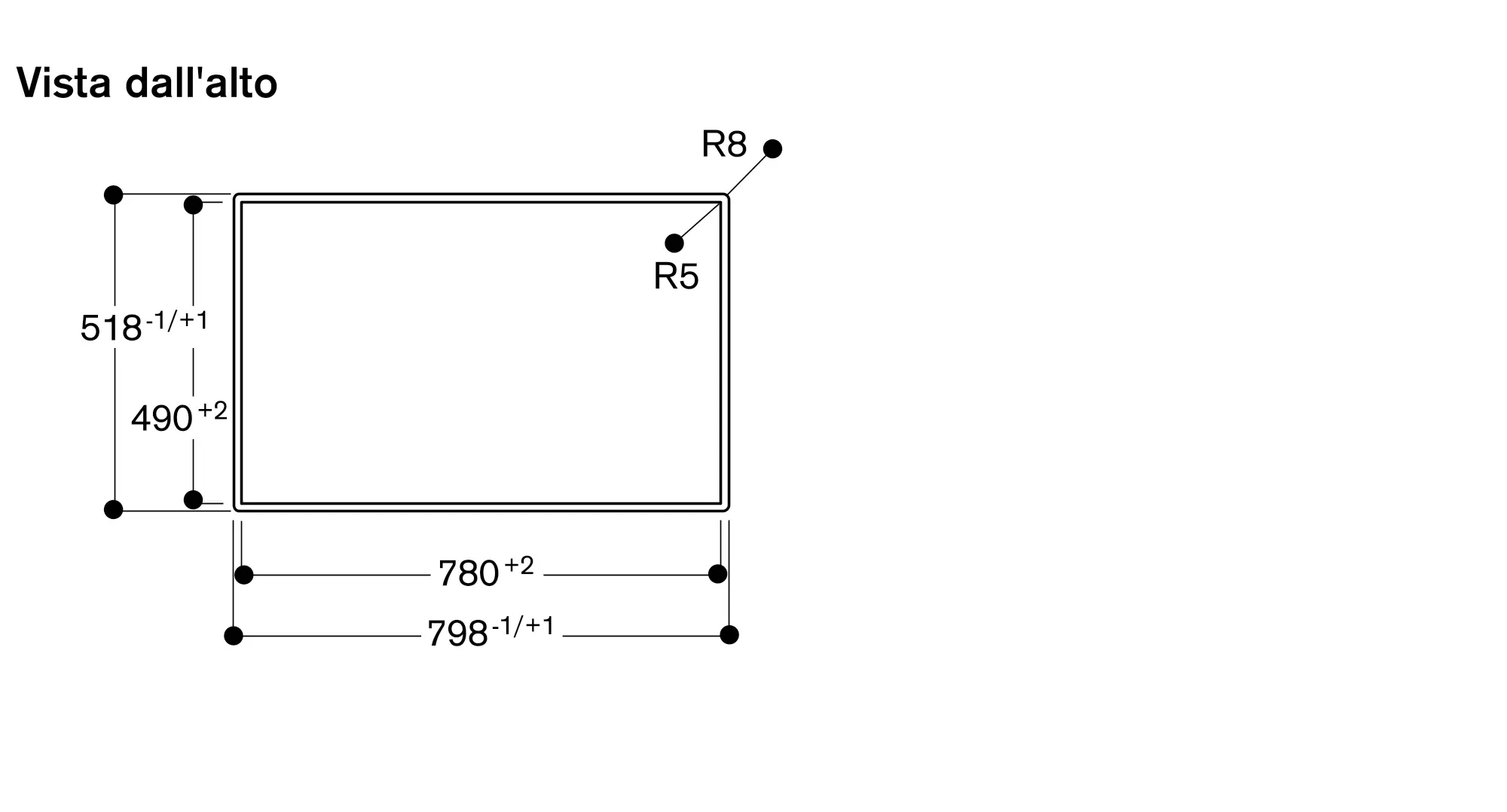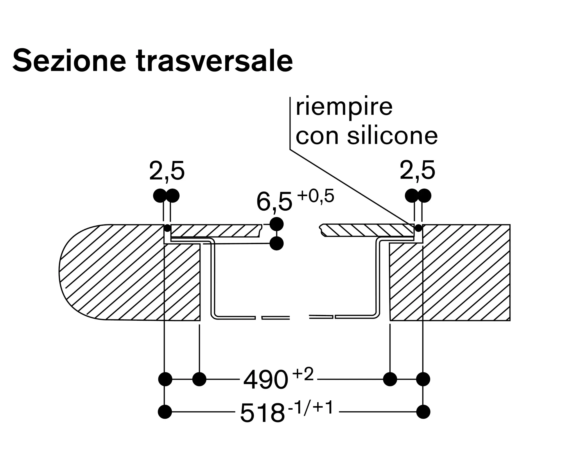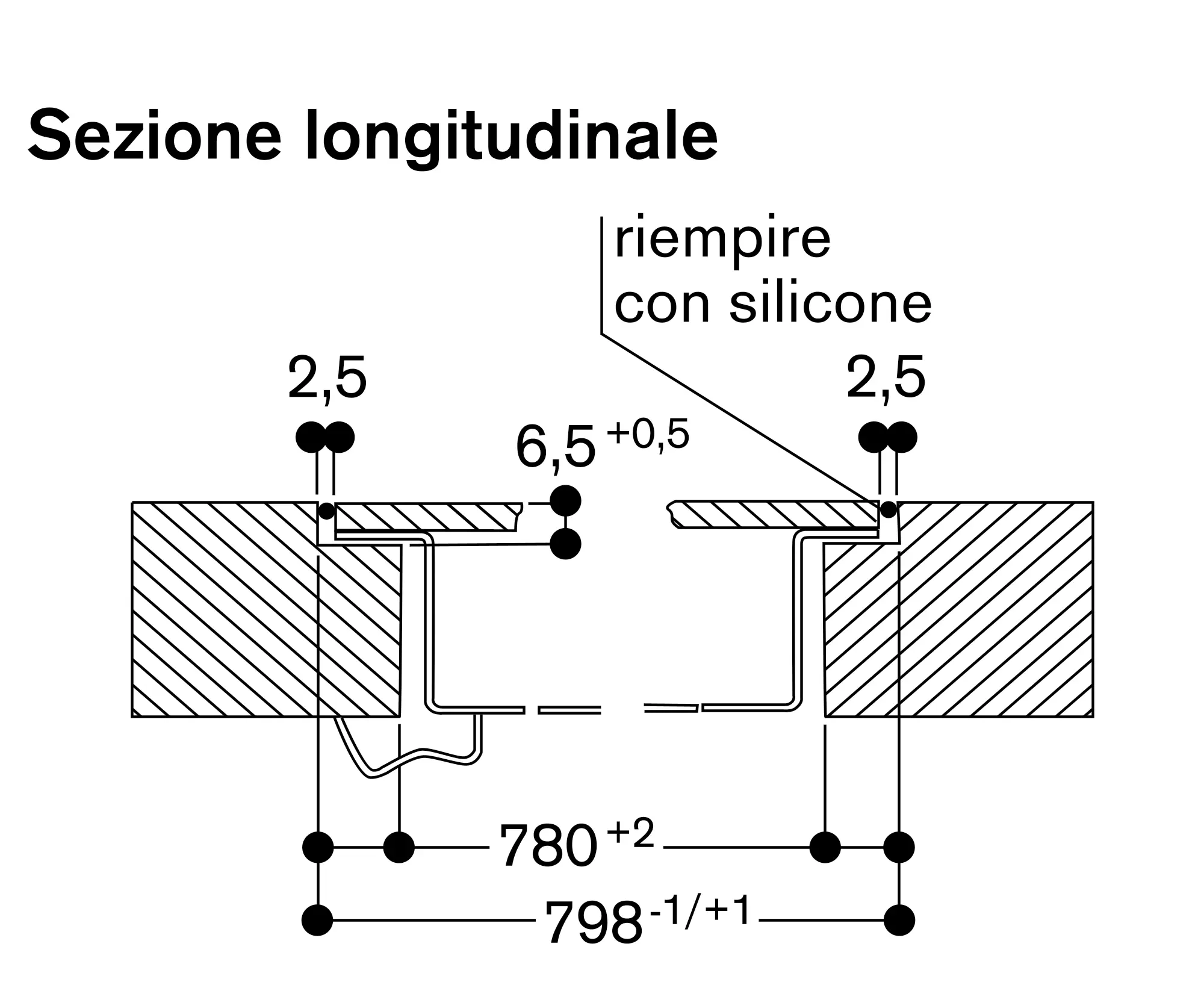 L'installazione è possibile in piani di pietra, sintetici o in legno massello. Devono essere rispettate la resistenza termica e la tenuta stagna dei bordi dell' intaglio. Per quanto riguarda gli altri materiali si prega di consultare il produttore del piano di lavoro.