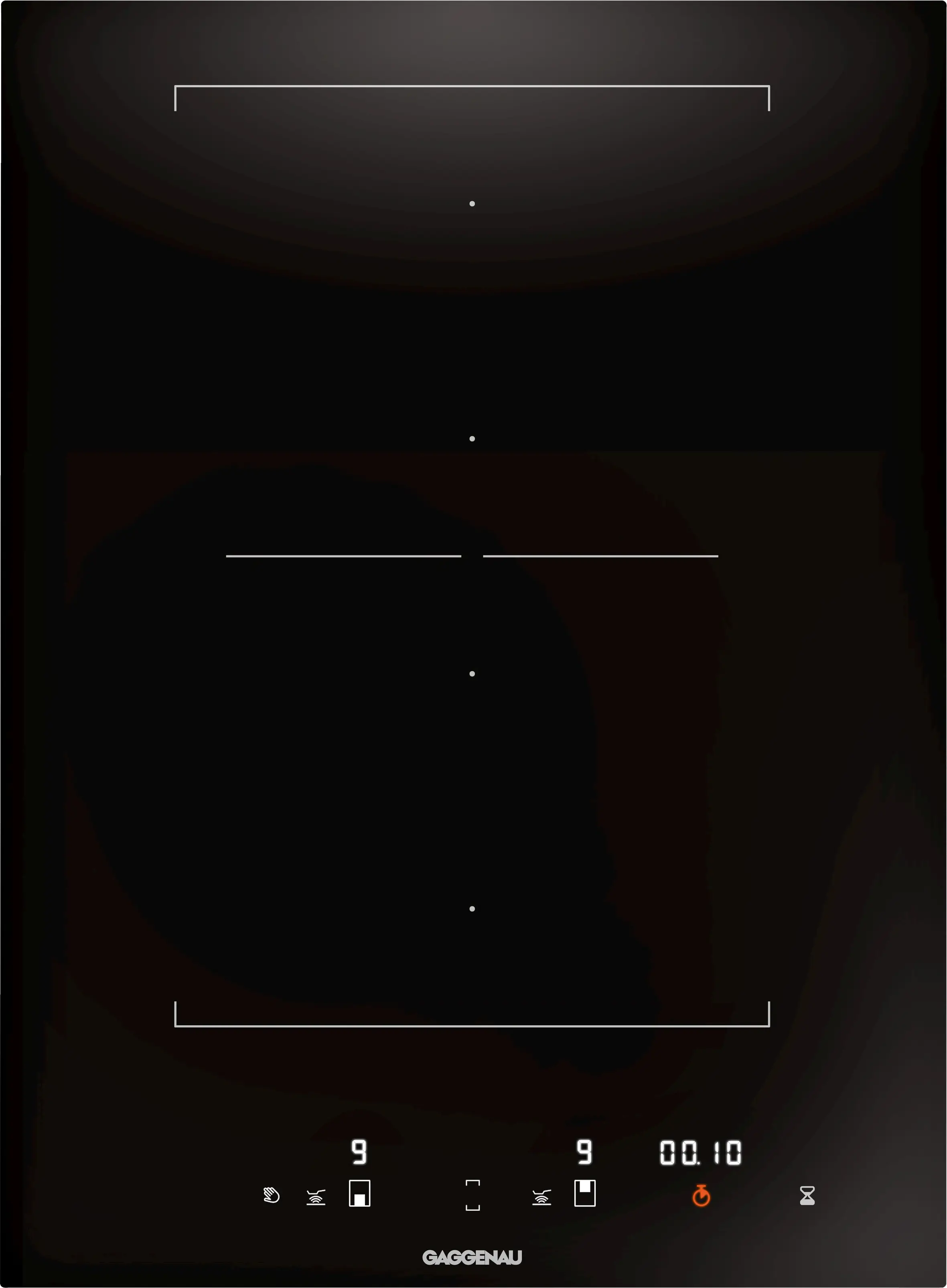 1 zona ad induzione ø 21 cm (2200 W, con booster 3700 W), con espansione automatica a ø 26 cm (2600 W,con booster 3700 W) e a ø 32 cm (3300 W, con booster 3700 W).