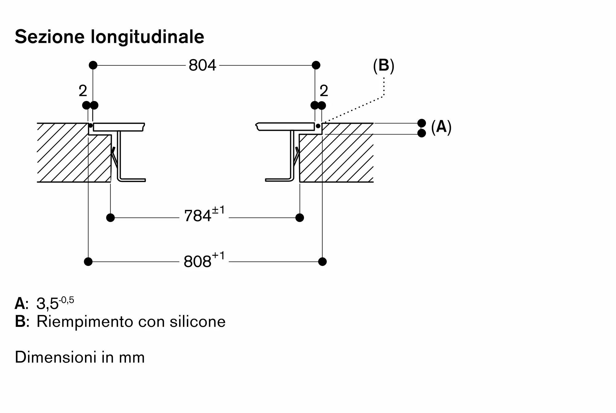 L'installazione è possibile in piani di pietra, sintetici o in legno massello. Devono essere rispettate la resistenza termica e la tenuta stagna dei bordi dell' intaglio. Per quanto riguarda gli altri materiali si prega di consultare il produttore del piano di lavoro.