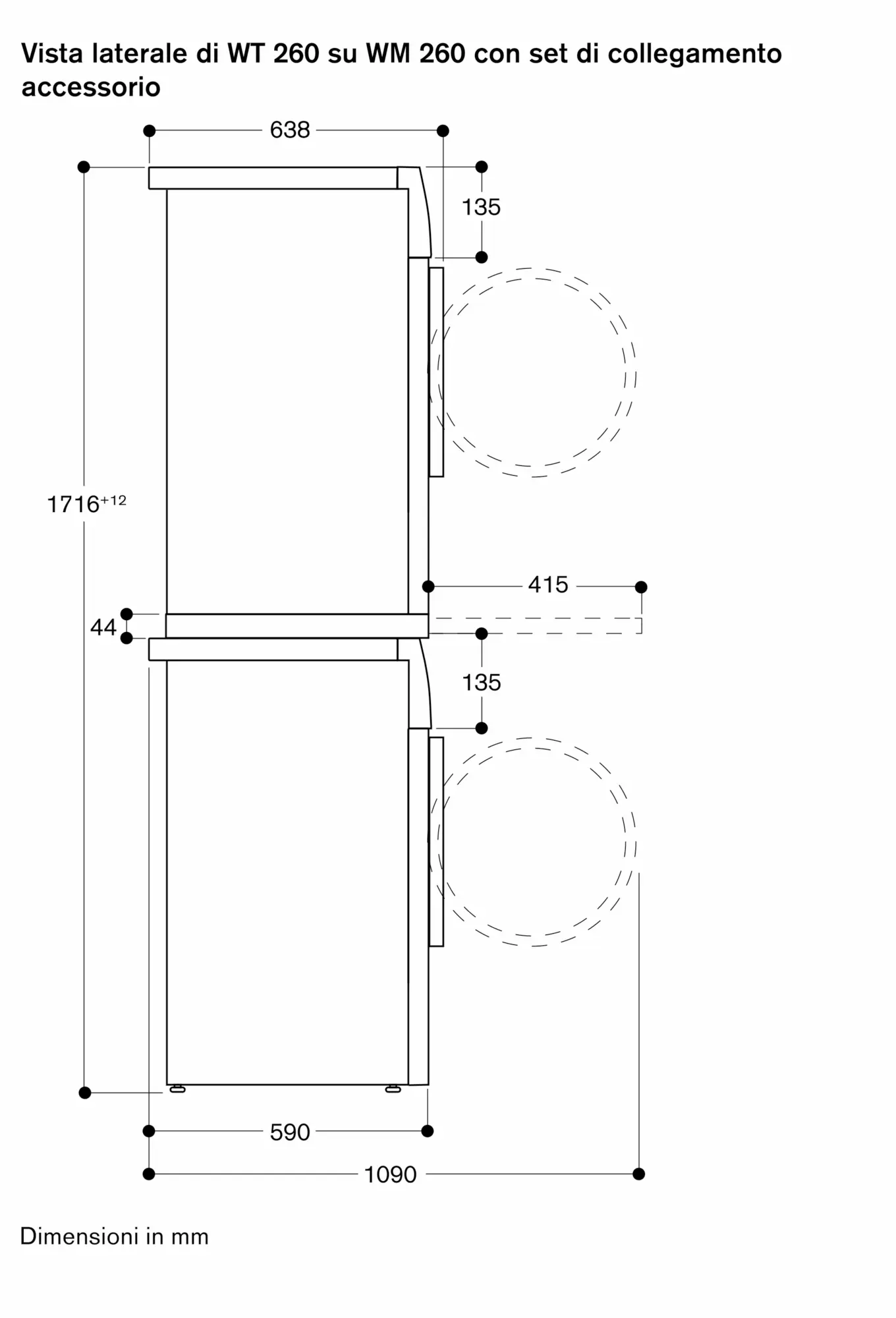 Installabile a colonna sopra la lavatrice WM 260 165 e WM 260 166 con accessorio speciale WA 027 500.