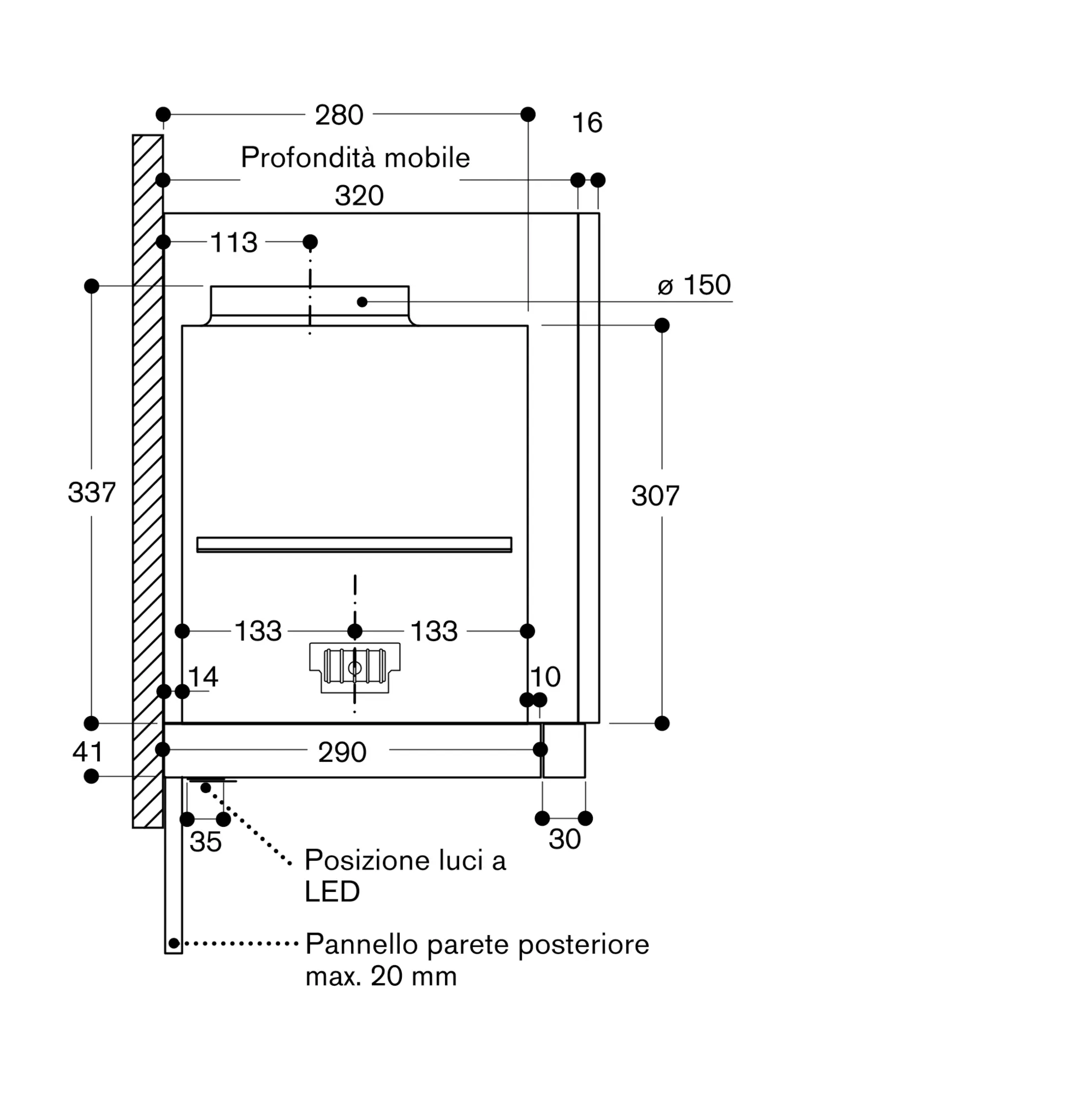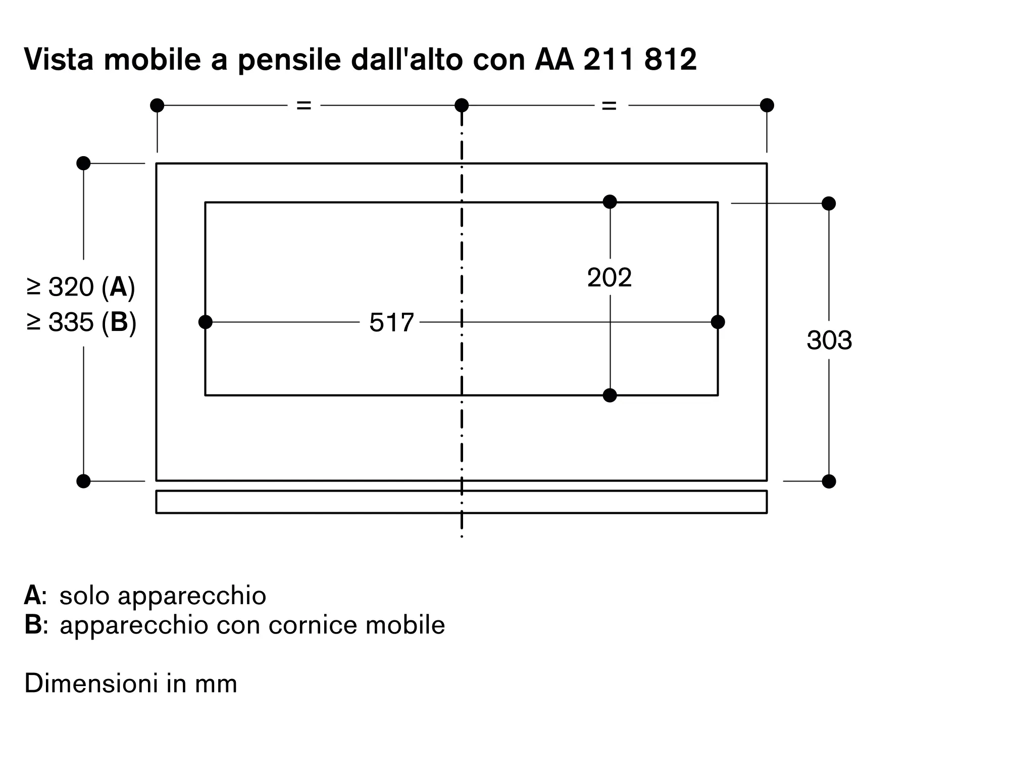 Distanza min. dai piani cottura elettrici sottostanti: 43 cm.