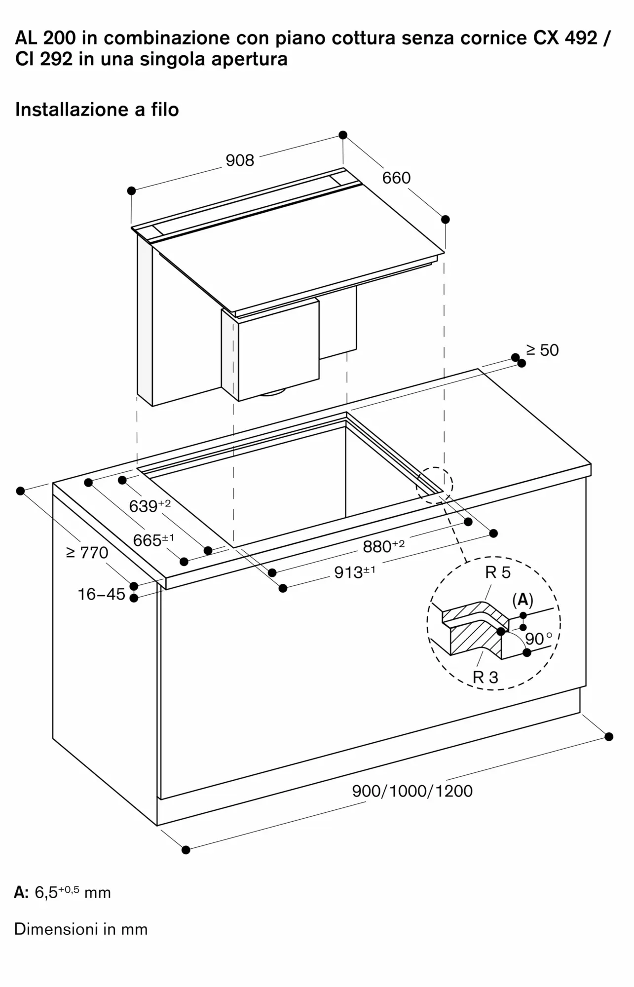 Perfetto in combinazione con piani cottura a induzione senza cornice 90 cm largo per il montaggio a filo