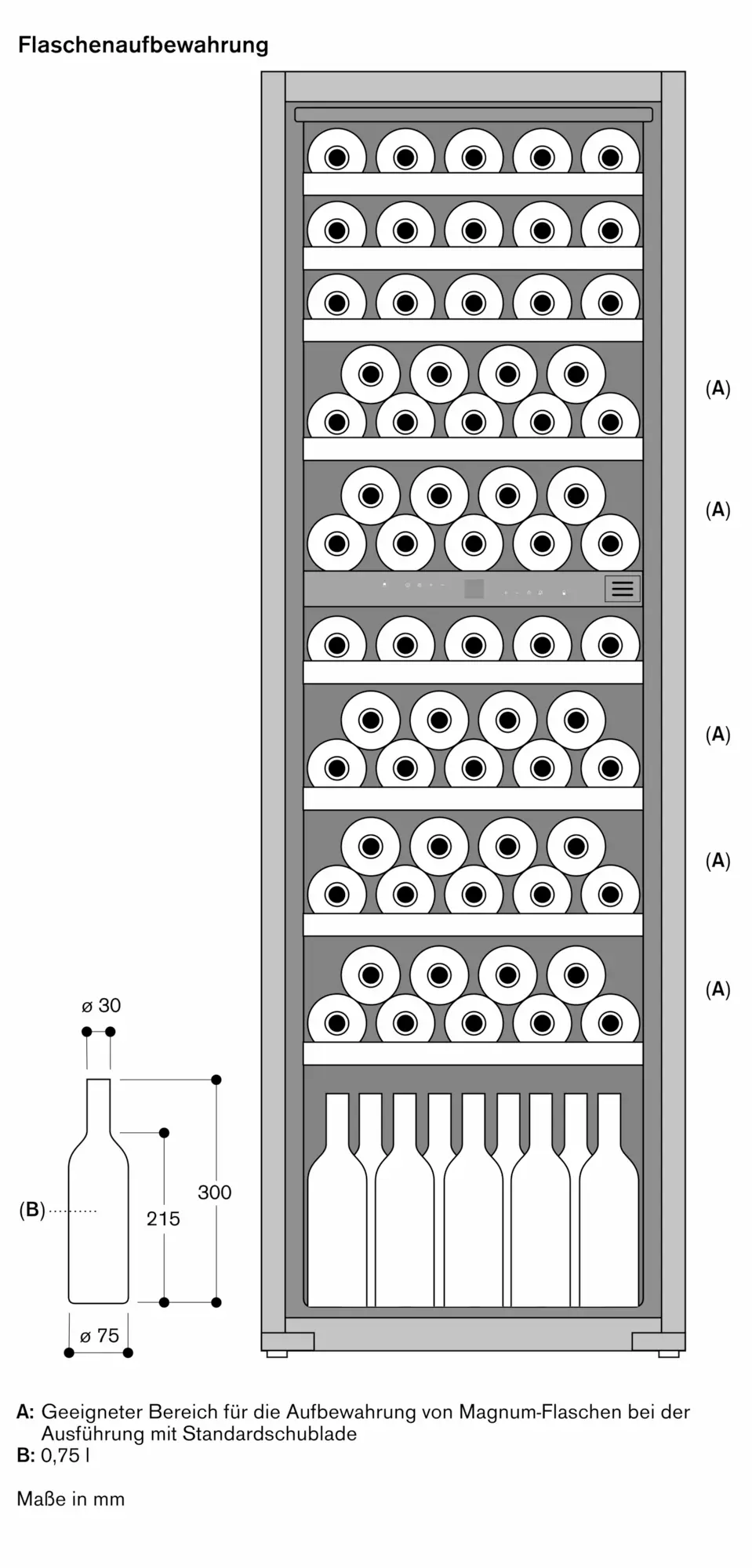 Kapazität 80 Flaschen (0,75-l-Standardflaschenformen).
