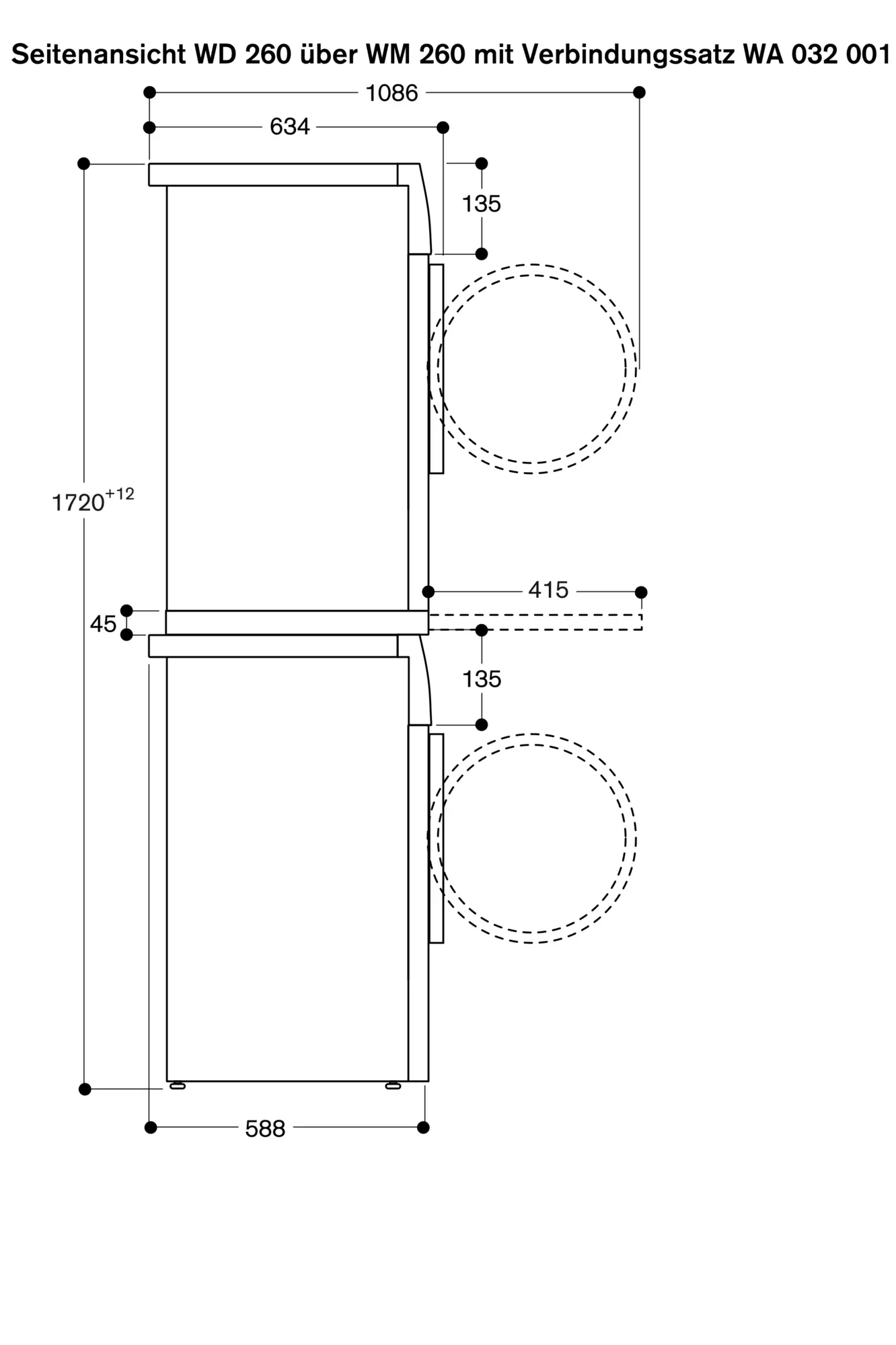 Stapelbar über Waschmaschine WM 260 162 mit passendem Sonderzubehör.