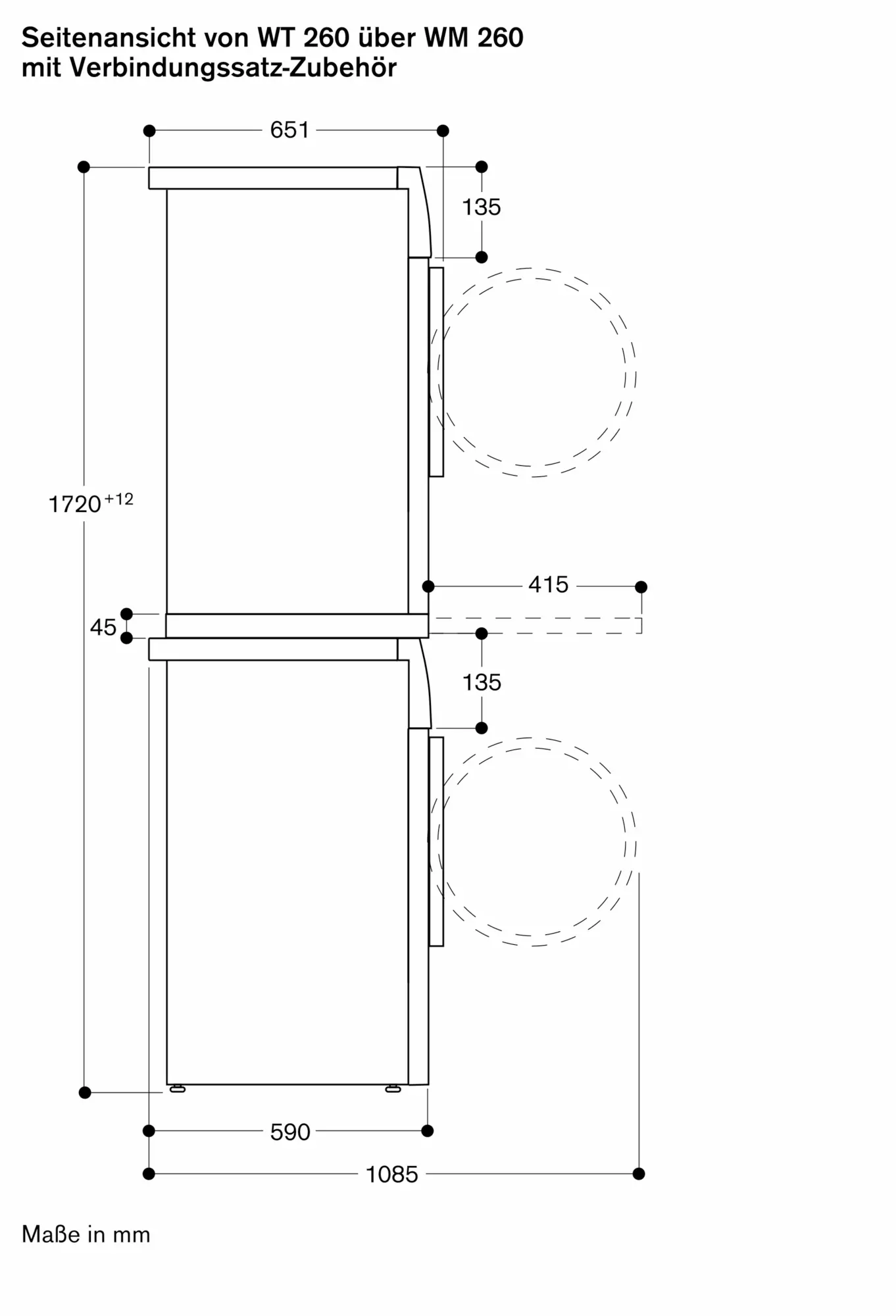 Stapelbar über Waschmaschine WM 260 164 mit passendem Sonderzubehör. Mit ausziehbarer Ablage 17001528, ohne ausziehbare Ablage 17001527.