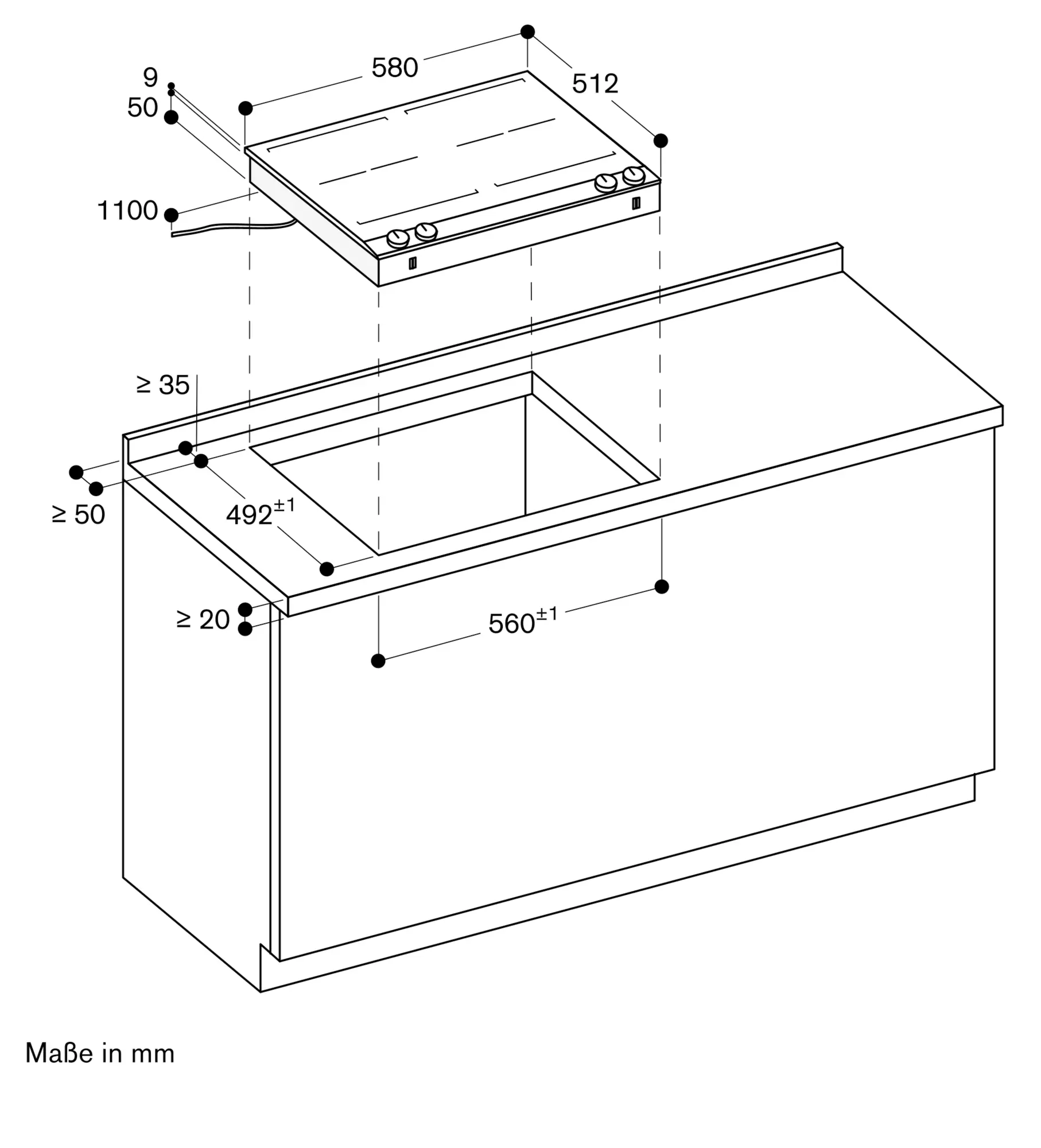 Gerät ist von oben in die Arbeitsplatte einschnappbar.