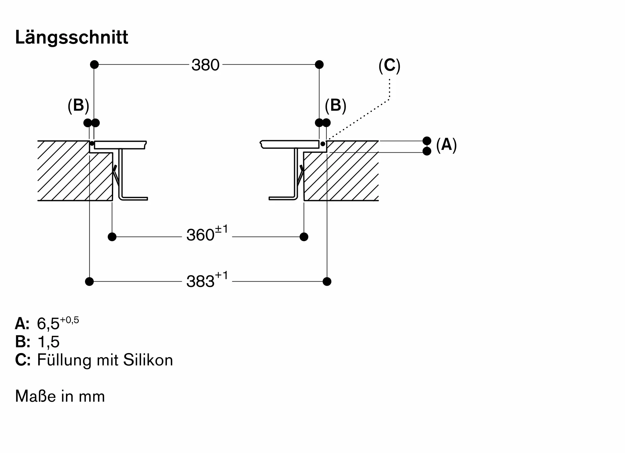 Die Nut muss durchgängig und eben sein, um eine gleichmäßige Auflage der Geräte auf der Dichtung zu gewährleisten. Keine punktuellen Unterfütterungen verwenden.
