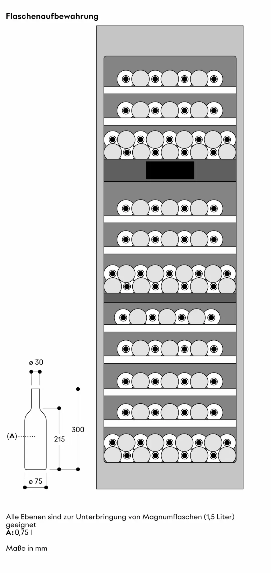 Kapazität 110 Flaschen (0,75-l-Standardflaschenformen).