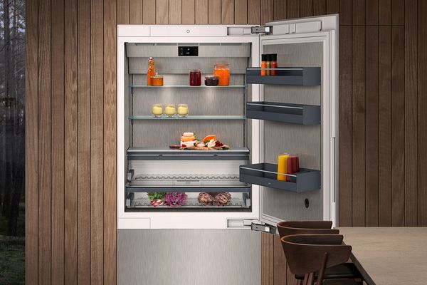 Jedes Gerät der Vario Kältegeräte Serie Expressive macht Ihr Bedienerlebnis aussergewöhnlich. Spezielle Programme optimieren die Bedingungen für bestimmte Lebensmittelkategorien, während animierte Kurzanleitungen die Pflege und Wartung vereinfachen. Mit Gaggenau Home Connect steuern Sie Ihre Geräte bequem und flexibel von jedem mobilen Endgerät aus. Unsere Kühl- und Gefrier-Kombinationen sind zudem mit integrierten Kameras ausgestattet, die Ihnen jederzeit einen Blick auf Ihre Vorräte ermöglichen – für ein rundum vernetztes Erlebnis.