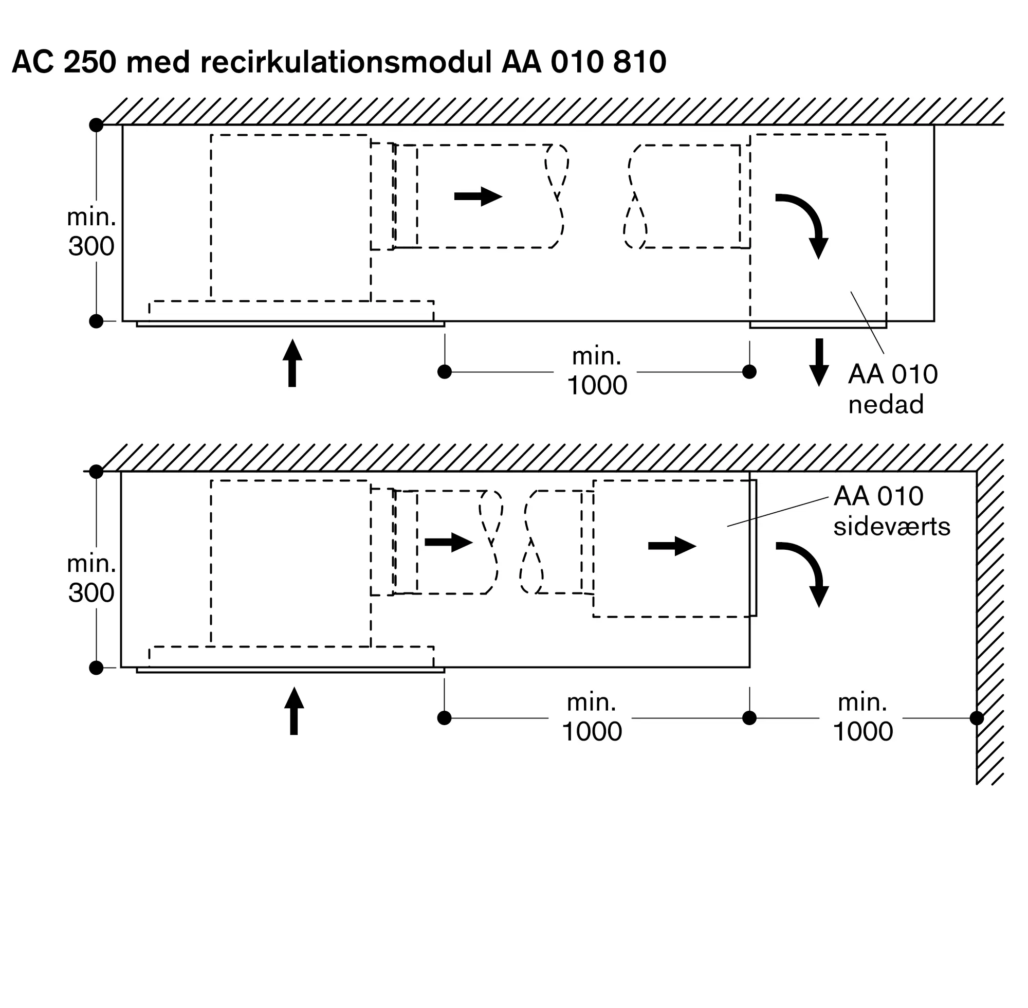 Anbefalet minimums afstand mellem filteråbning og væg: 100 cm