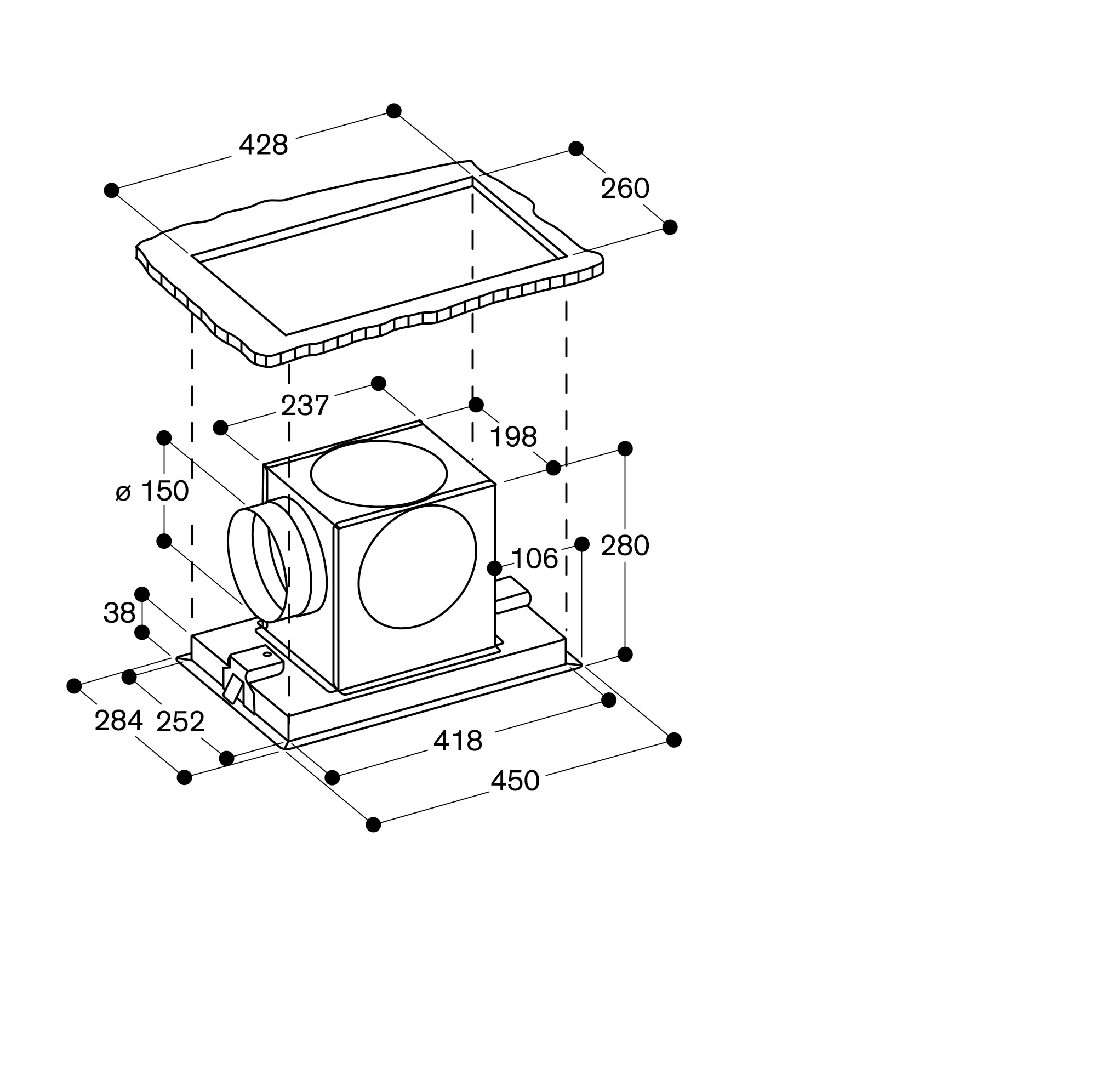 Inklusive designpanel, vægbeslag, aktivt kulfilter, flexislange og to slangeklemmer