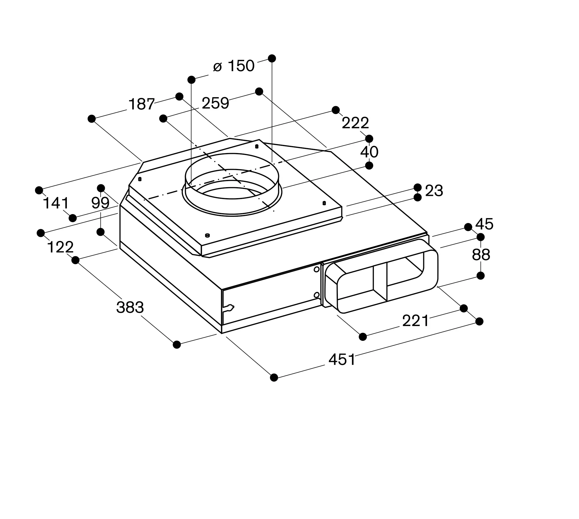 Rørforbindelser luftindtag: 1x 150 mm rund