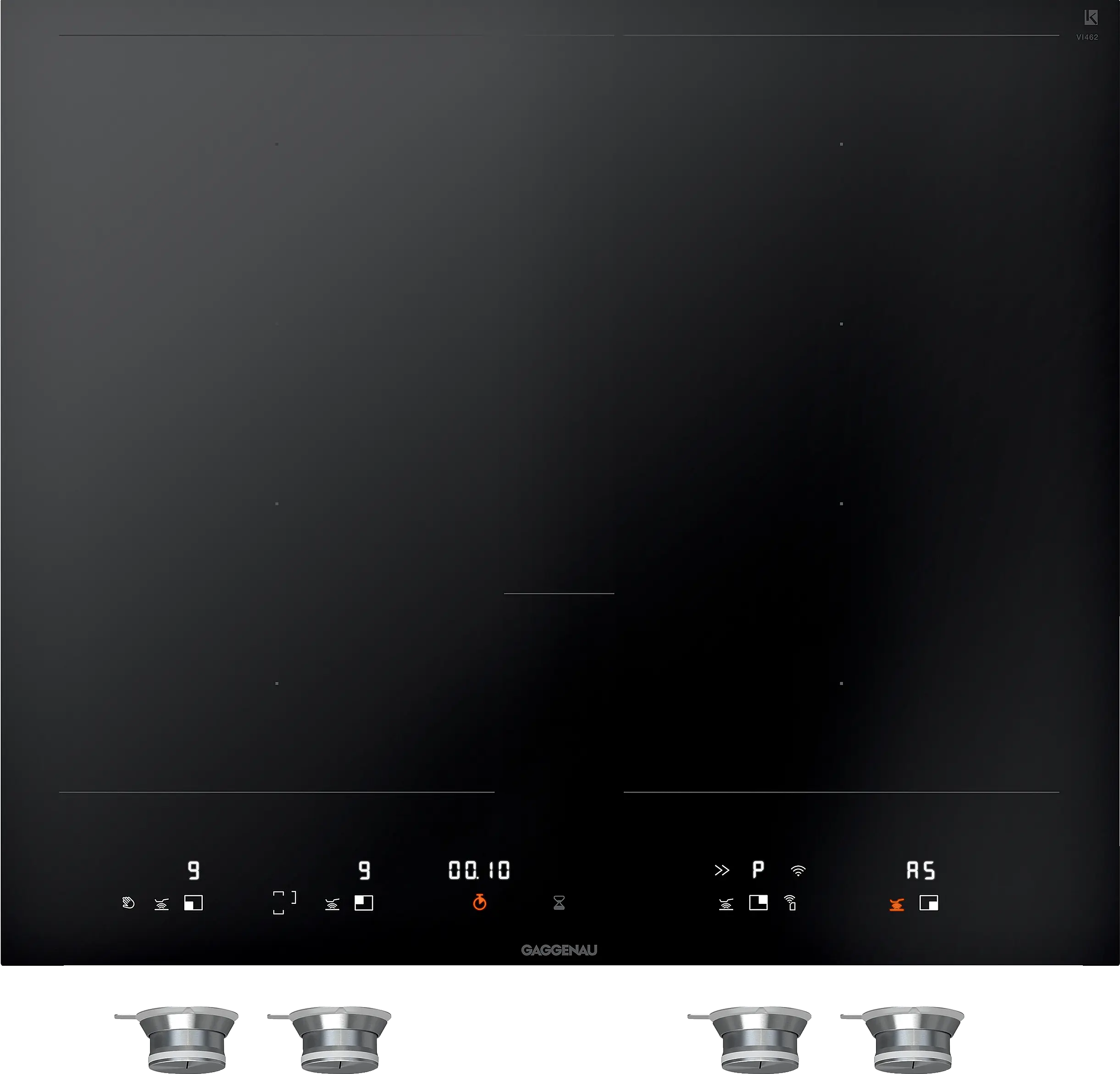 2 flex-induktionskogezoner med hver 20x23 cm (2200 W, med booster 3700 W), sammenkoblet 40x23 cm (3300 W, med booster 3700 W), med automatisk udvidelse op til 30x30 cm (3300 W, med booster 3700 W)
