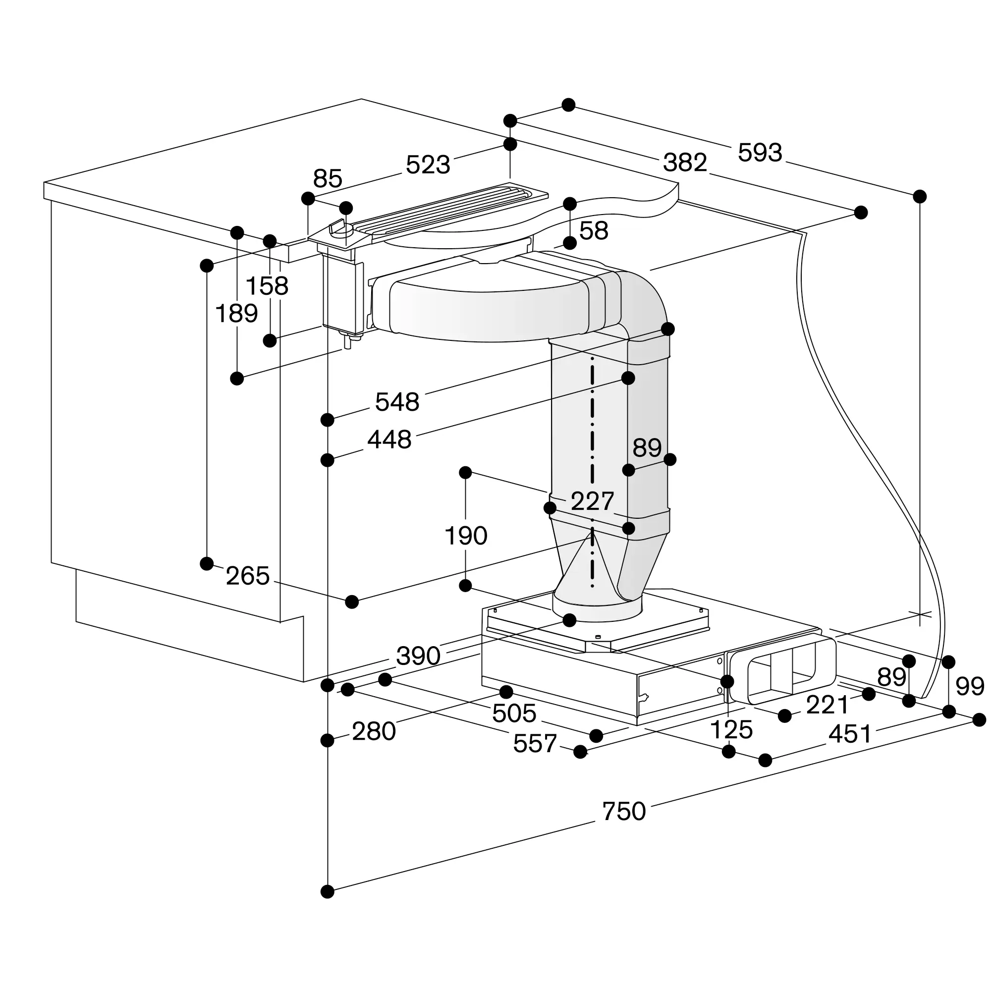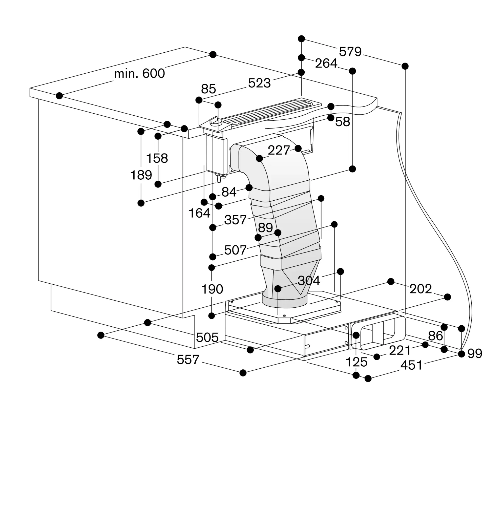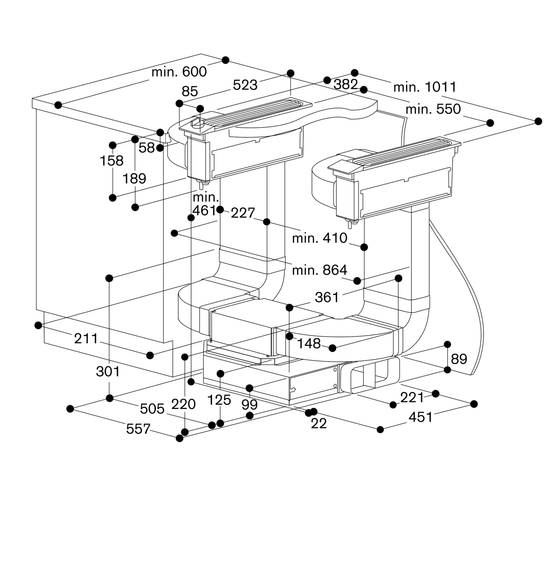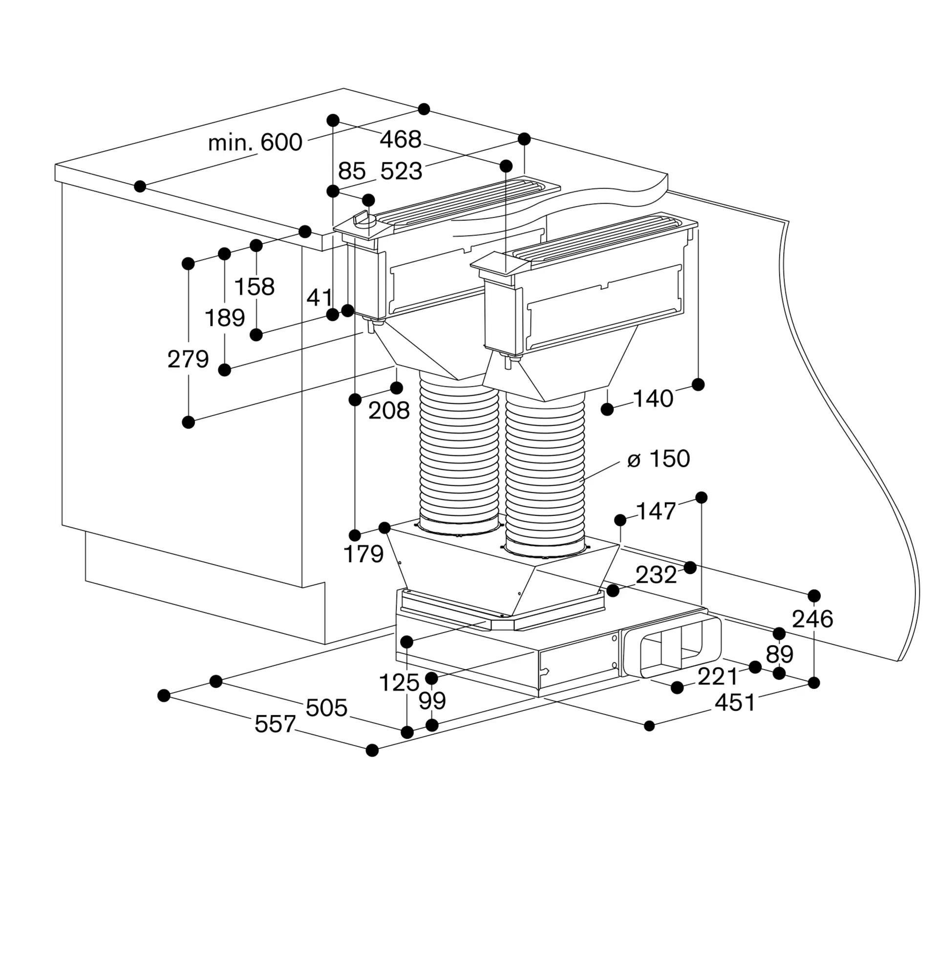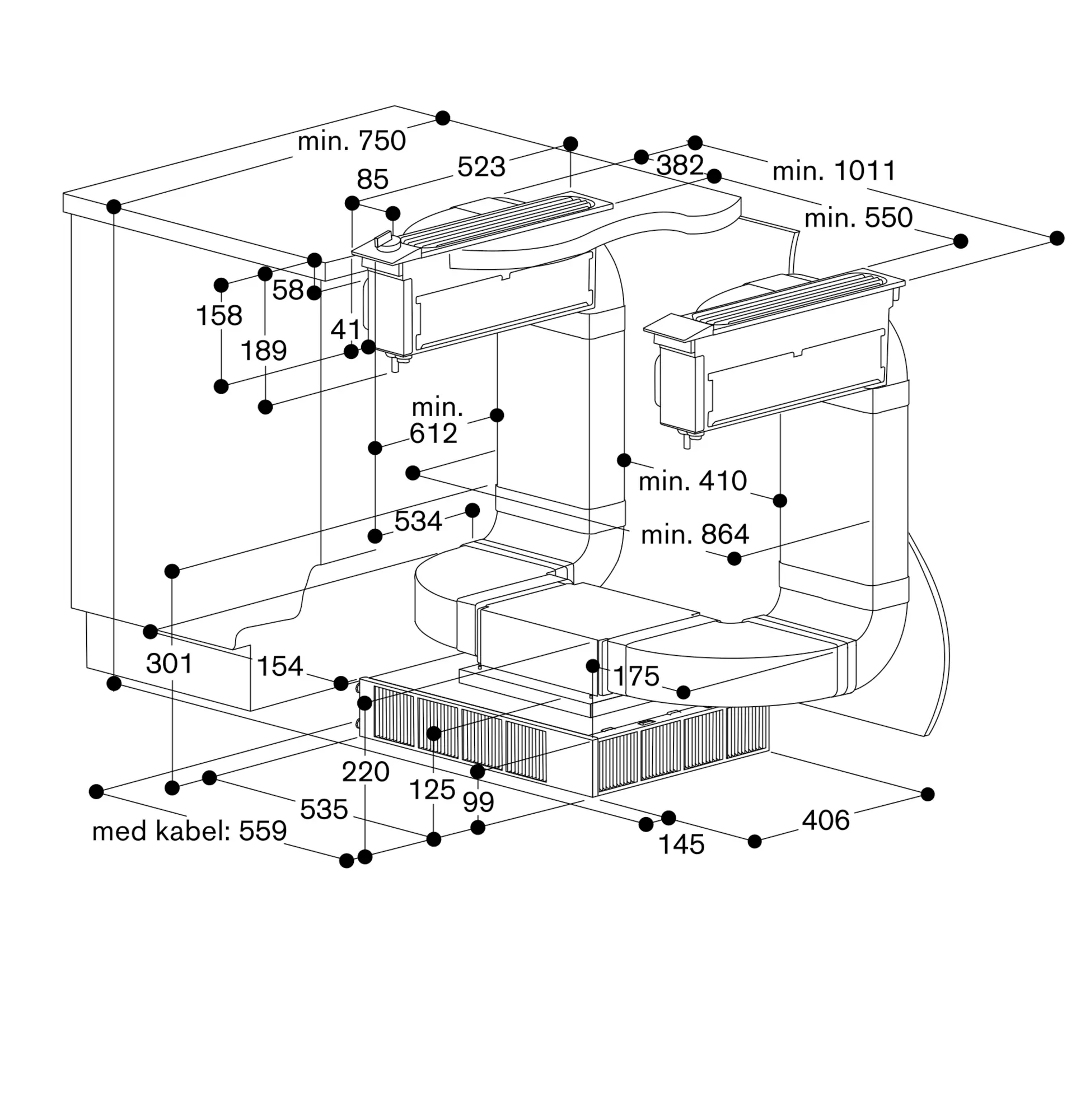 Maks. bredde på komfur mellem to VL: 60 cm (undtagelse: VI/VE 270)