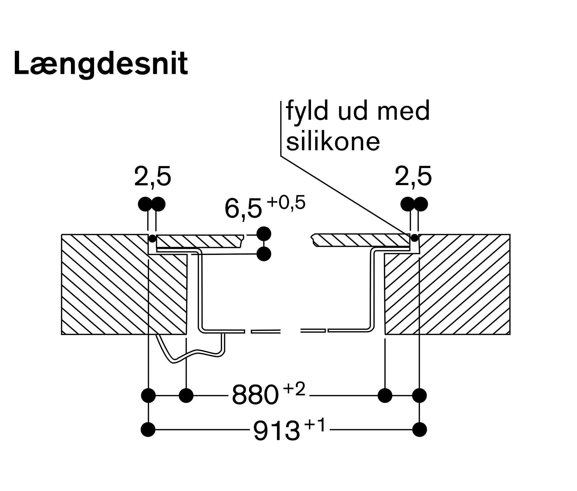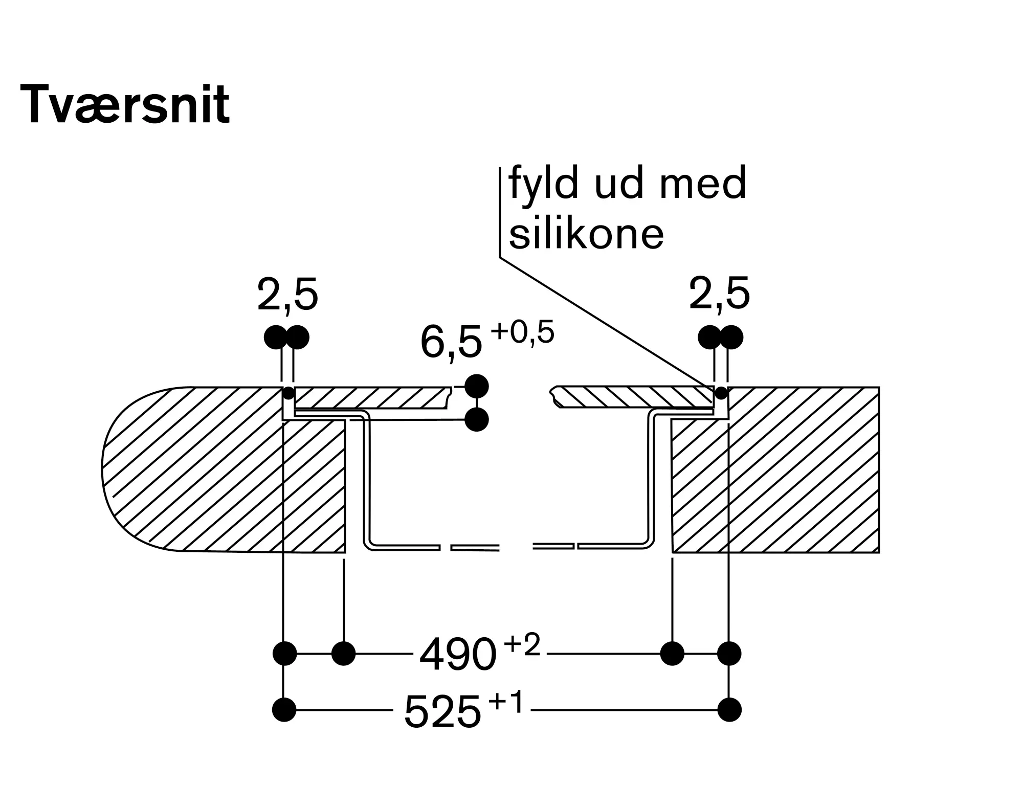 Kogetoppen må ikke indbygges dybere end overkanten af bordpladen.