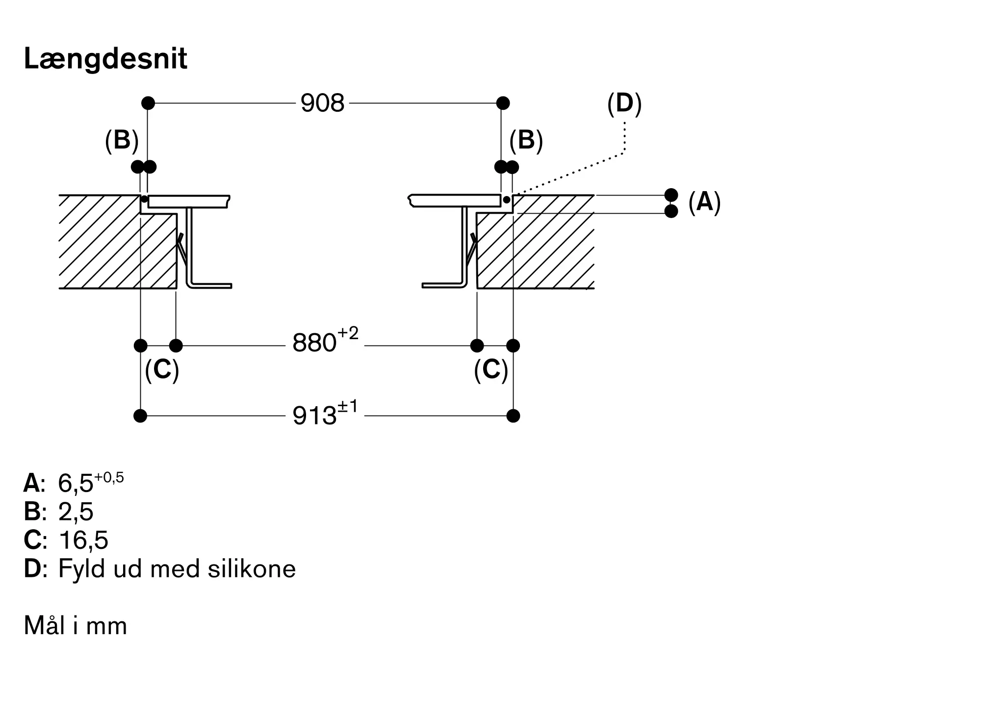 Det er muligt at montere bordplader i sten, syntetisk materiale og massivt træ. Varmebestandighed og tætning af udskæring aftales med bordpladeleverandøren