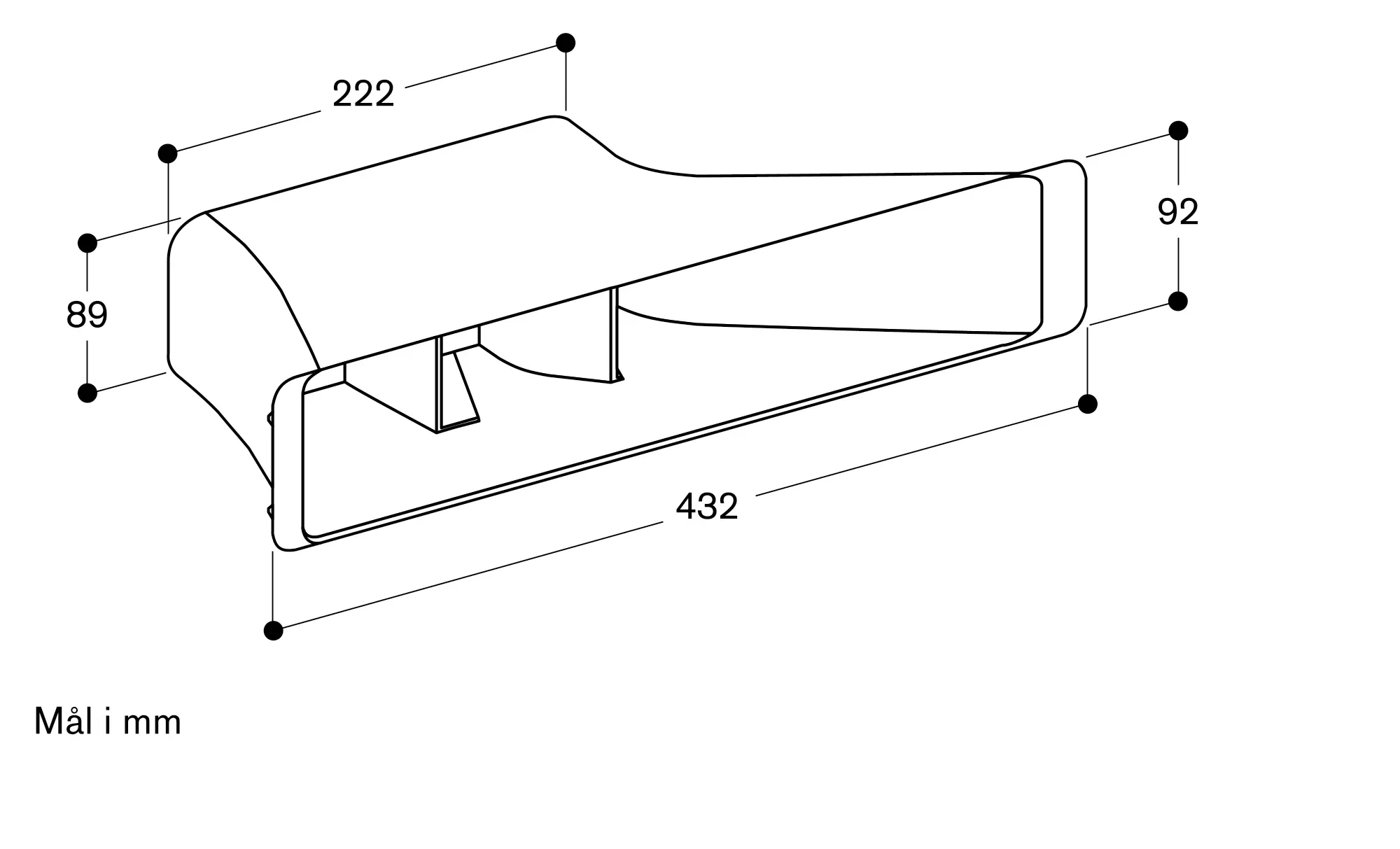 Overhold afstandene fra under bordpladen til overløbsbeholderen: min. 300 mm for at fjerne og tømme beholderen.