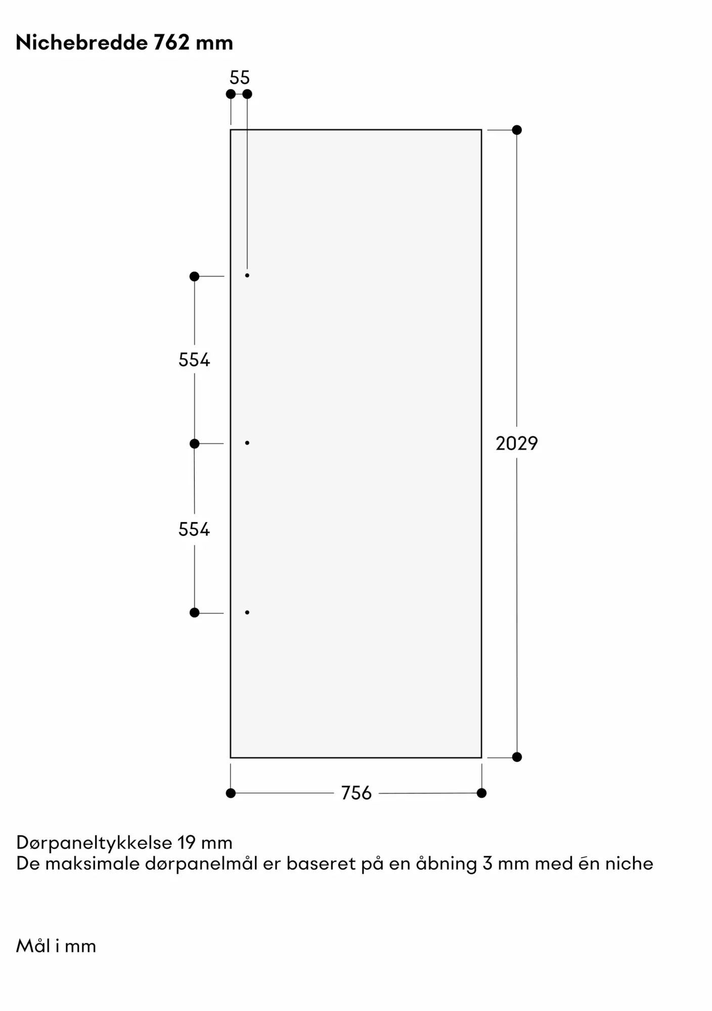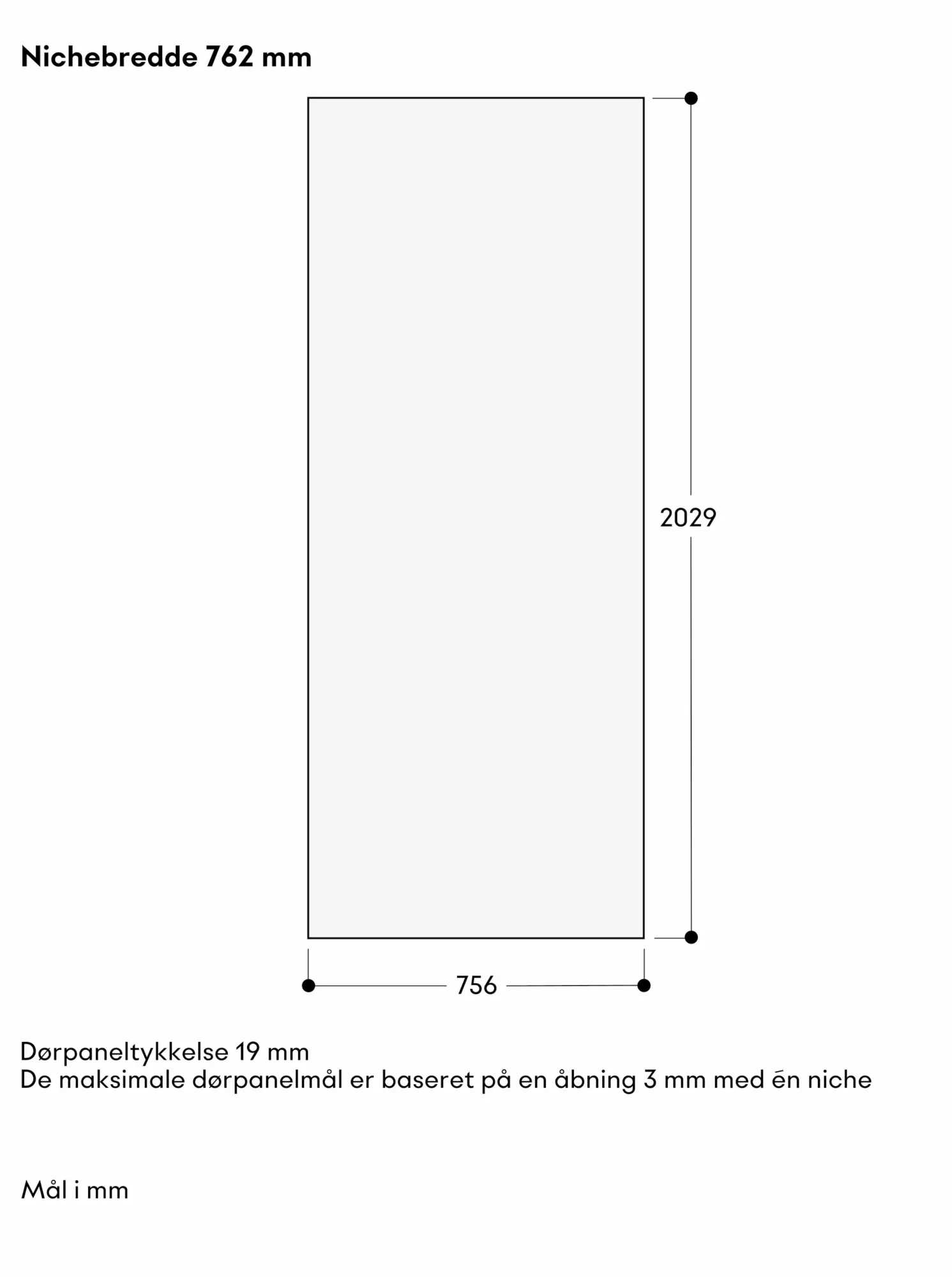 Døråbningsvinkel 115°, kan begrænses til 90°