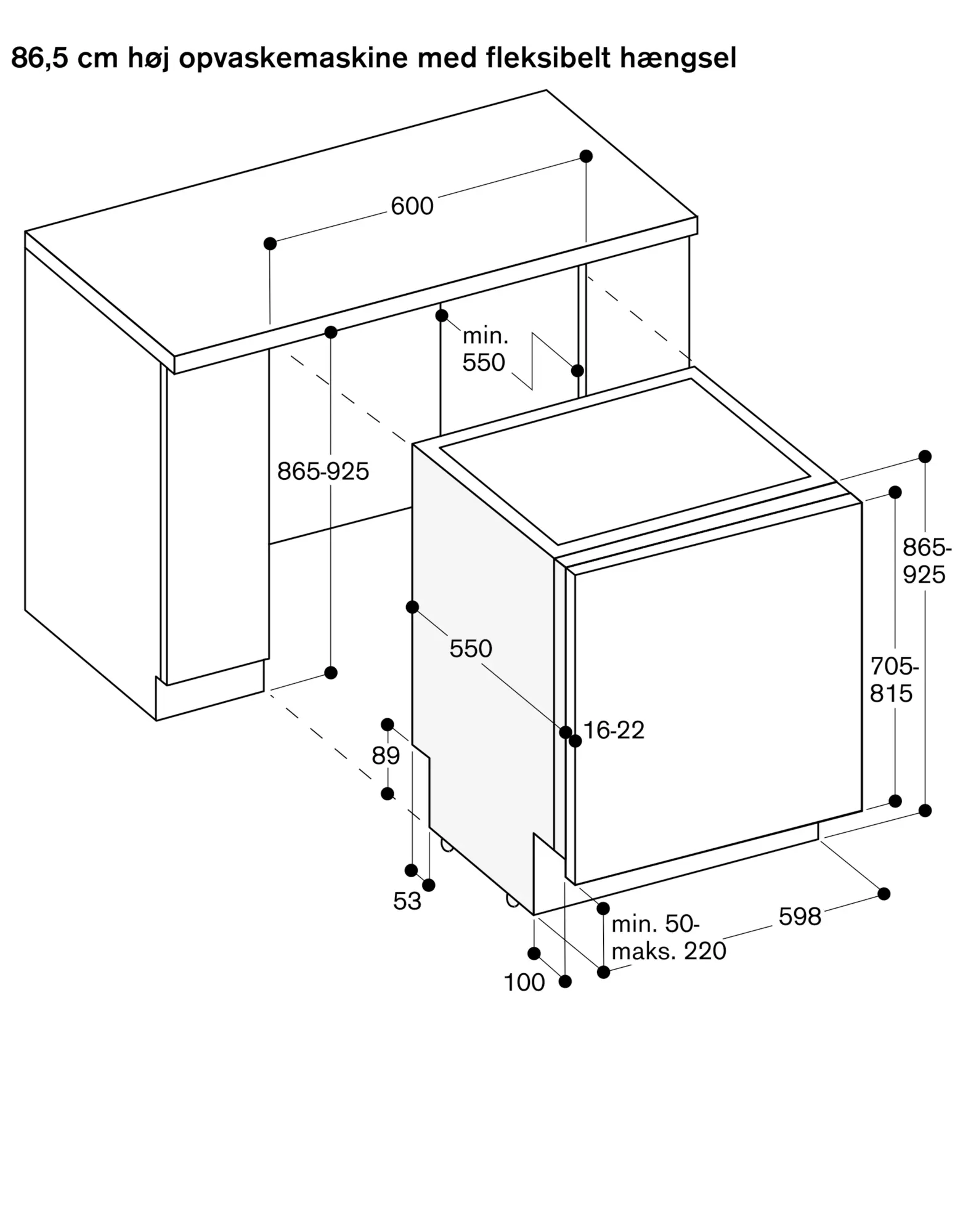 Serie 400 Opvaskemaskine 60 cm Fleksibelt hængselDF481101F