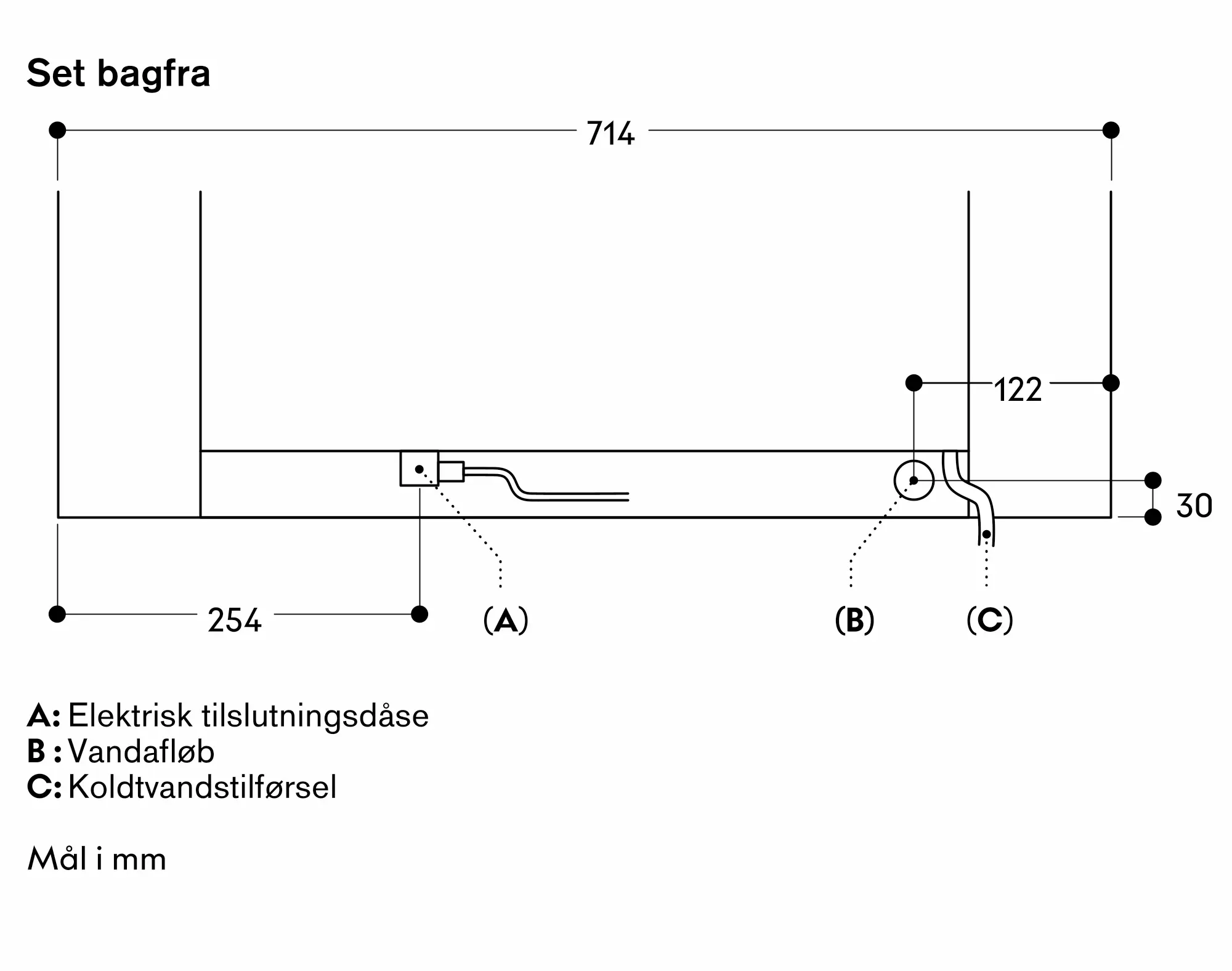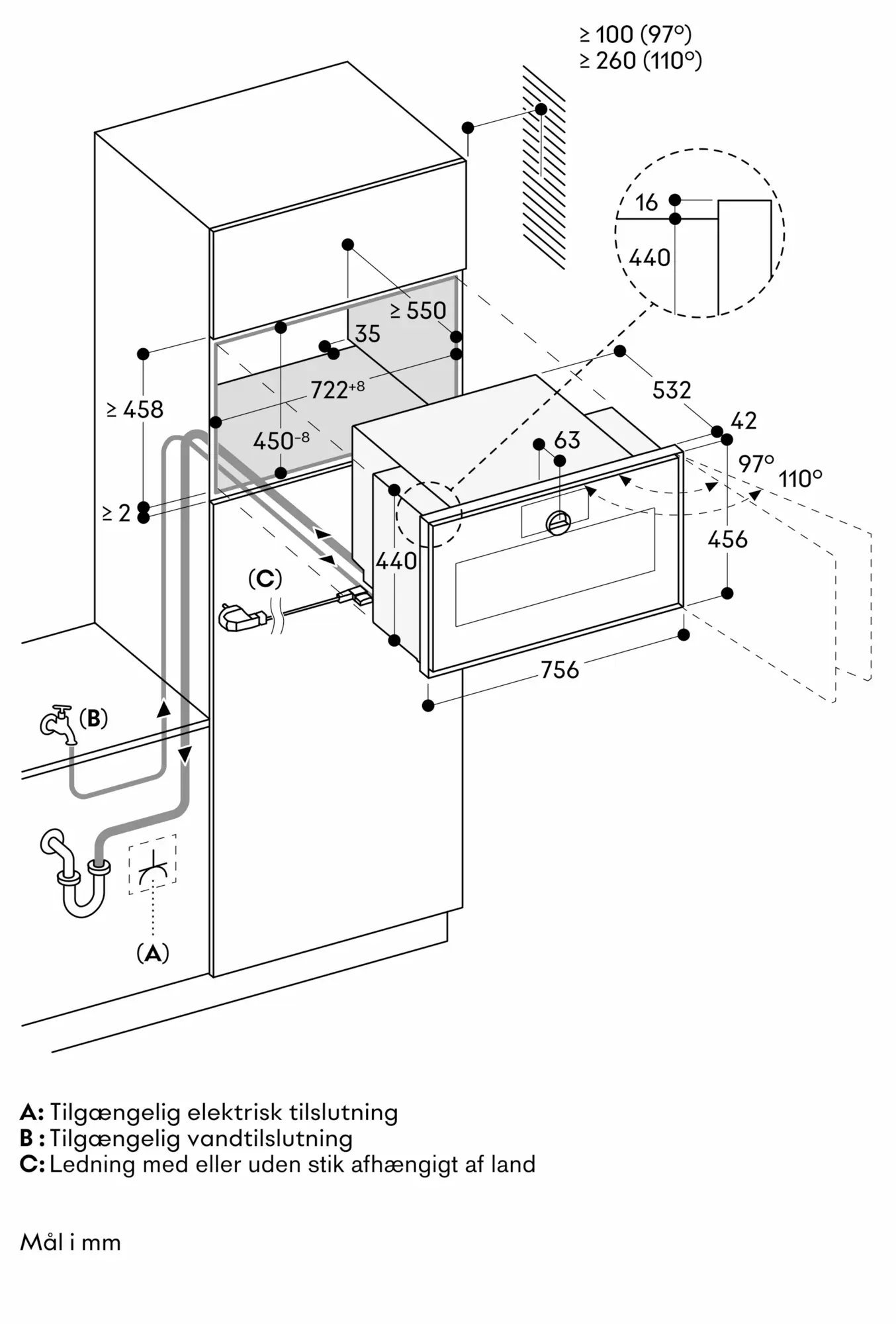 Stikkontakten skal være tilgængelig og placeret uden for den indbyggede niche.