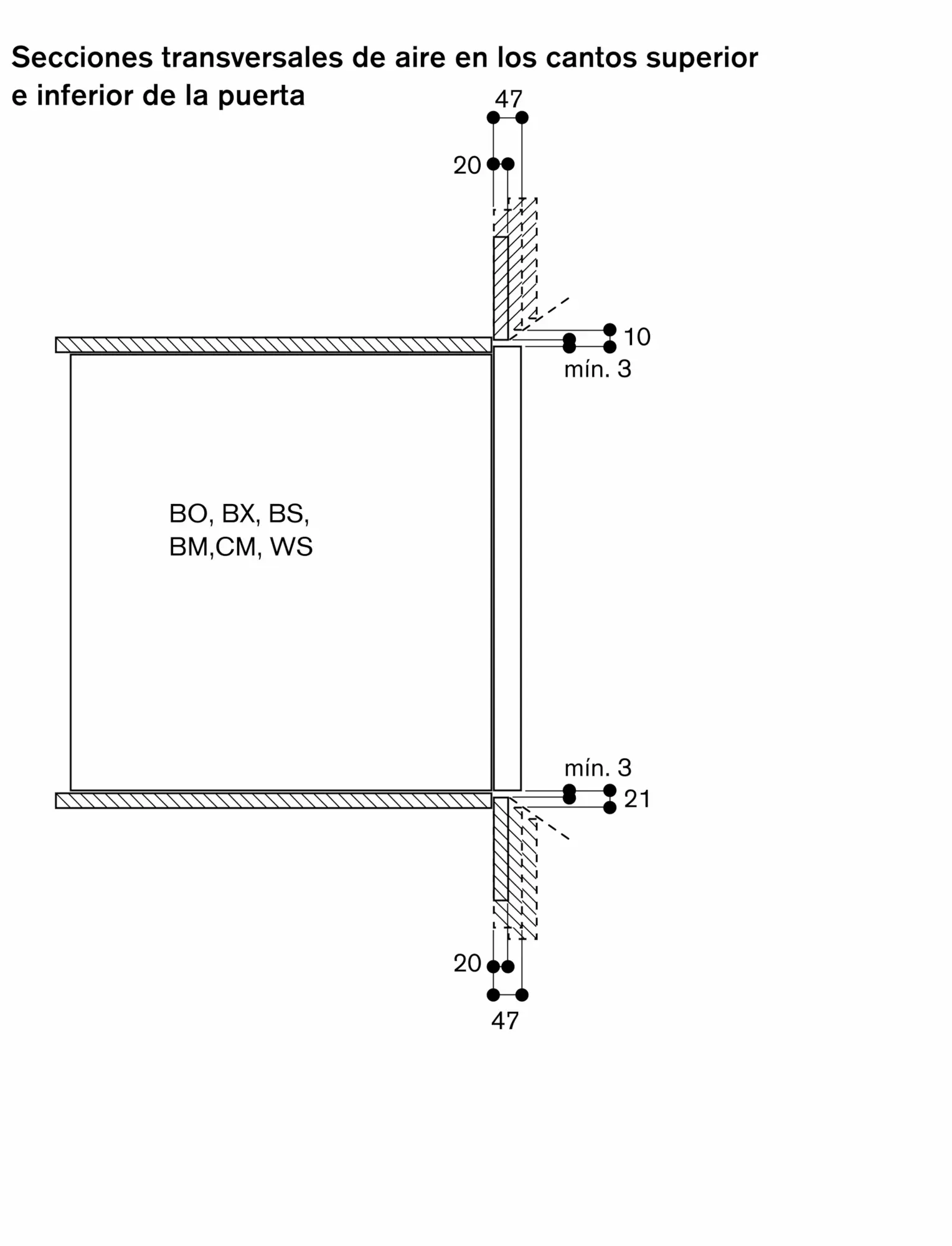El plano frontal del horno sobresale 47 mm sobre el mueble donde se integra.