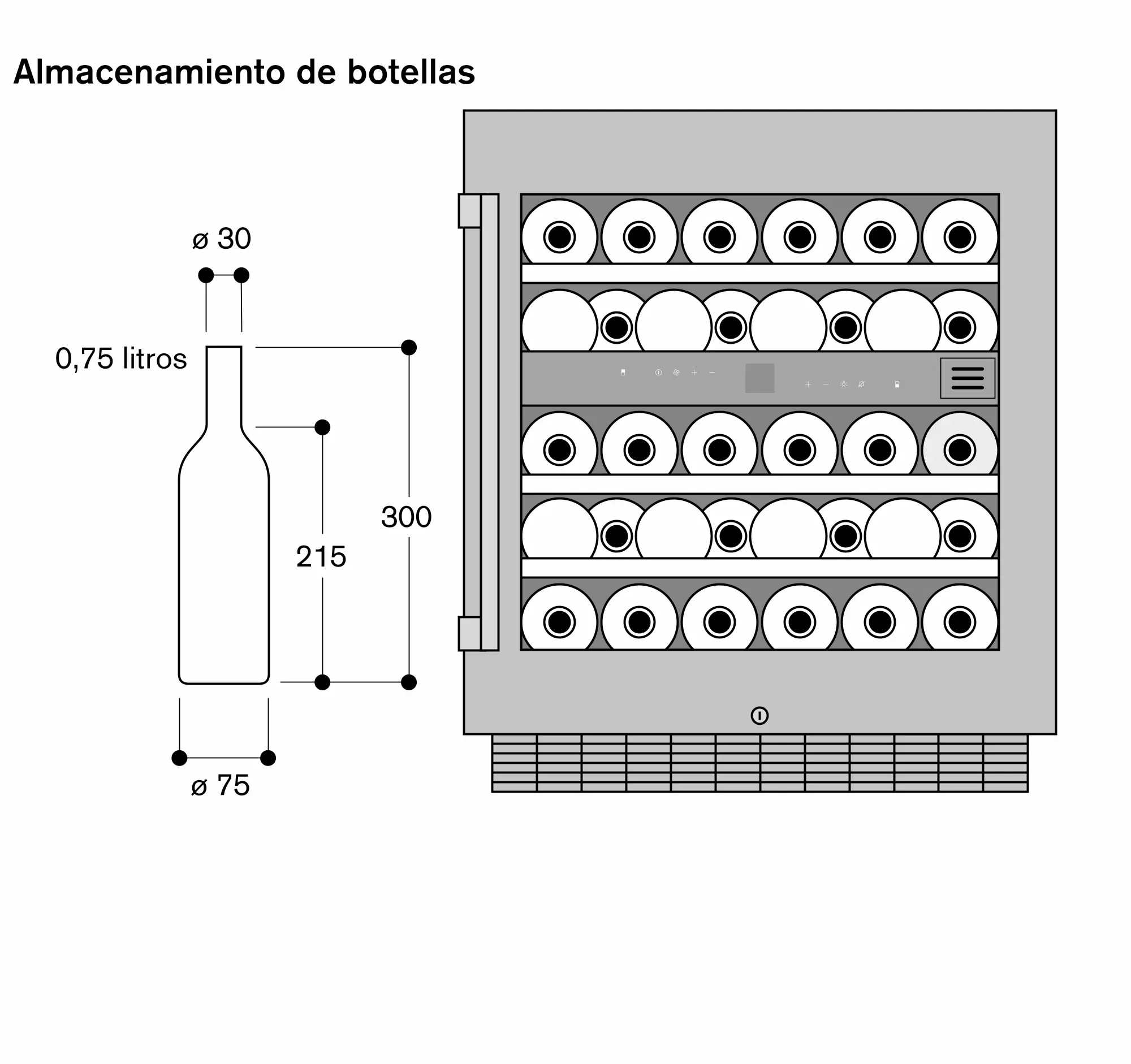 Capacidad en 0,75 l (botellas de vino)