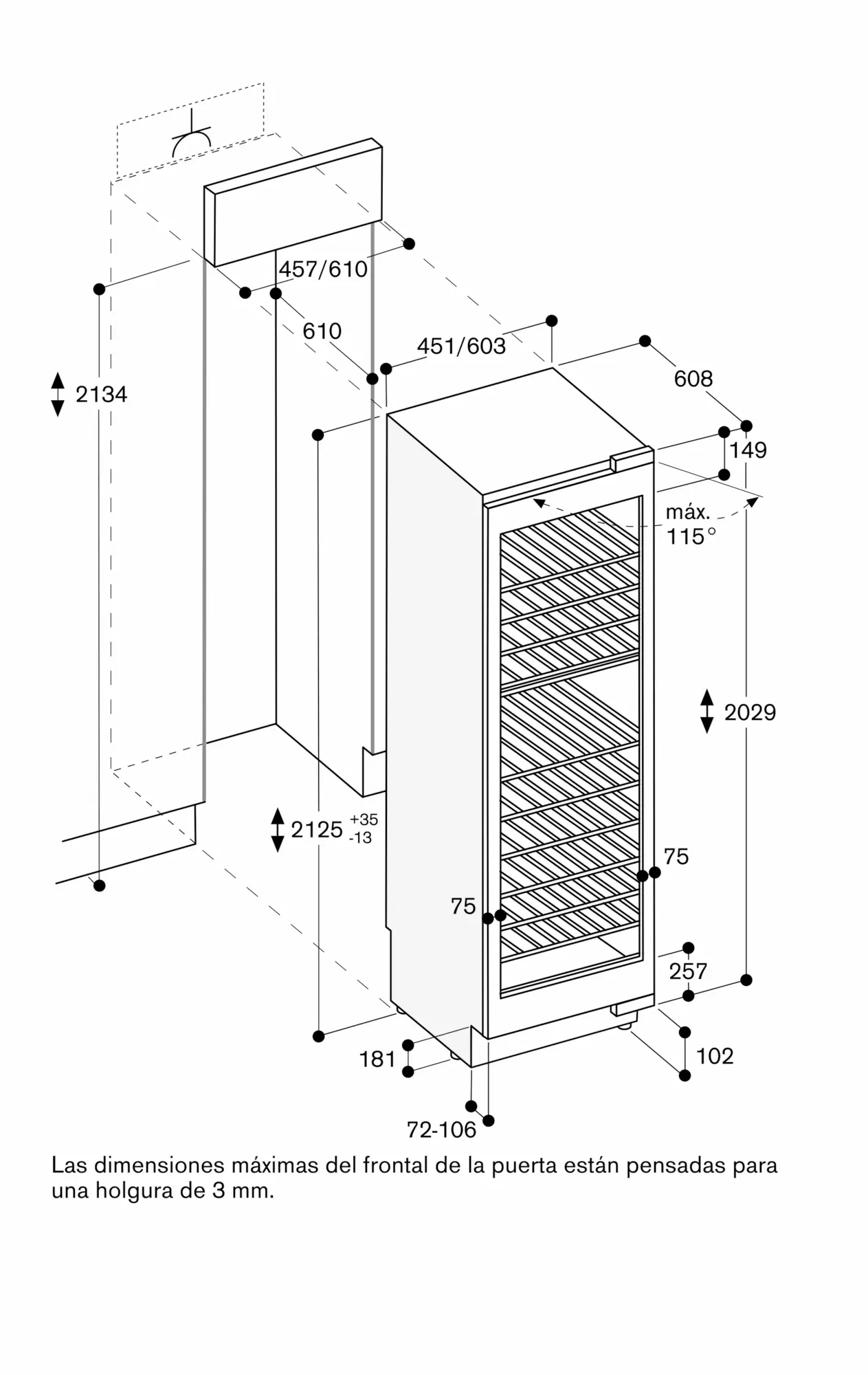 Capacidad 98 botellas (botellas estandar de 0,75L).