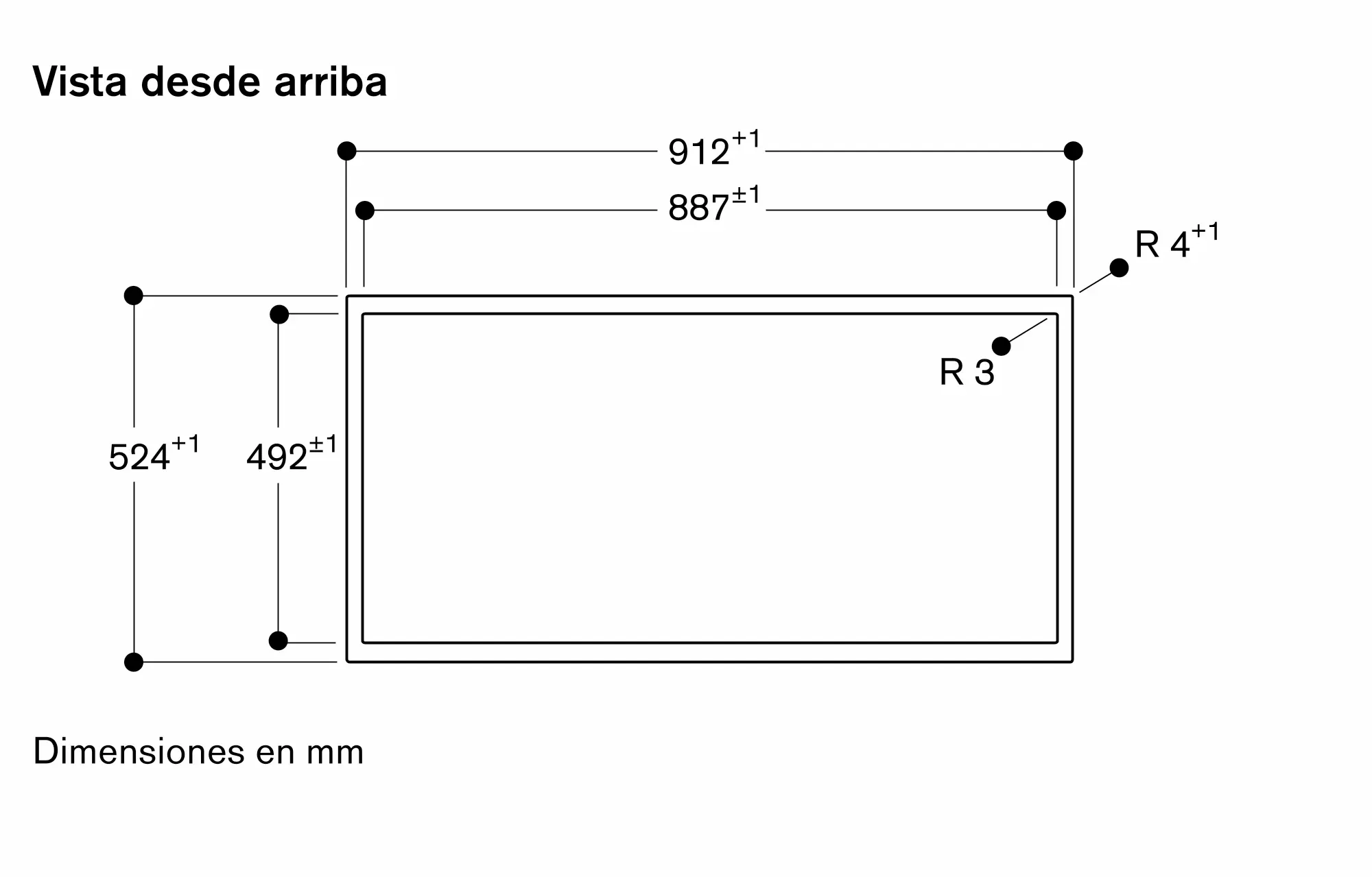La capacidad de carga y estabilidad, particularmente en el caso de encimeras finas, debe reforzarse mediante subestructuras adecuadas. Tener en cuenta el peso del aparato y las cargas adicionales.