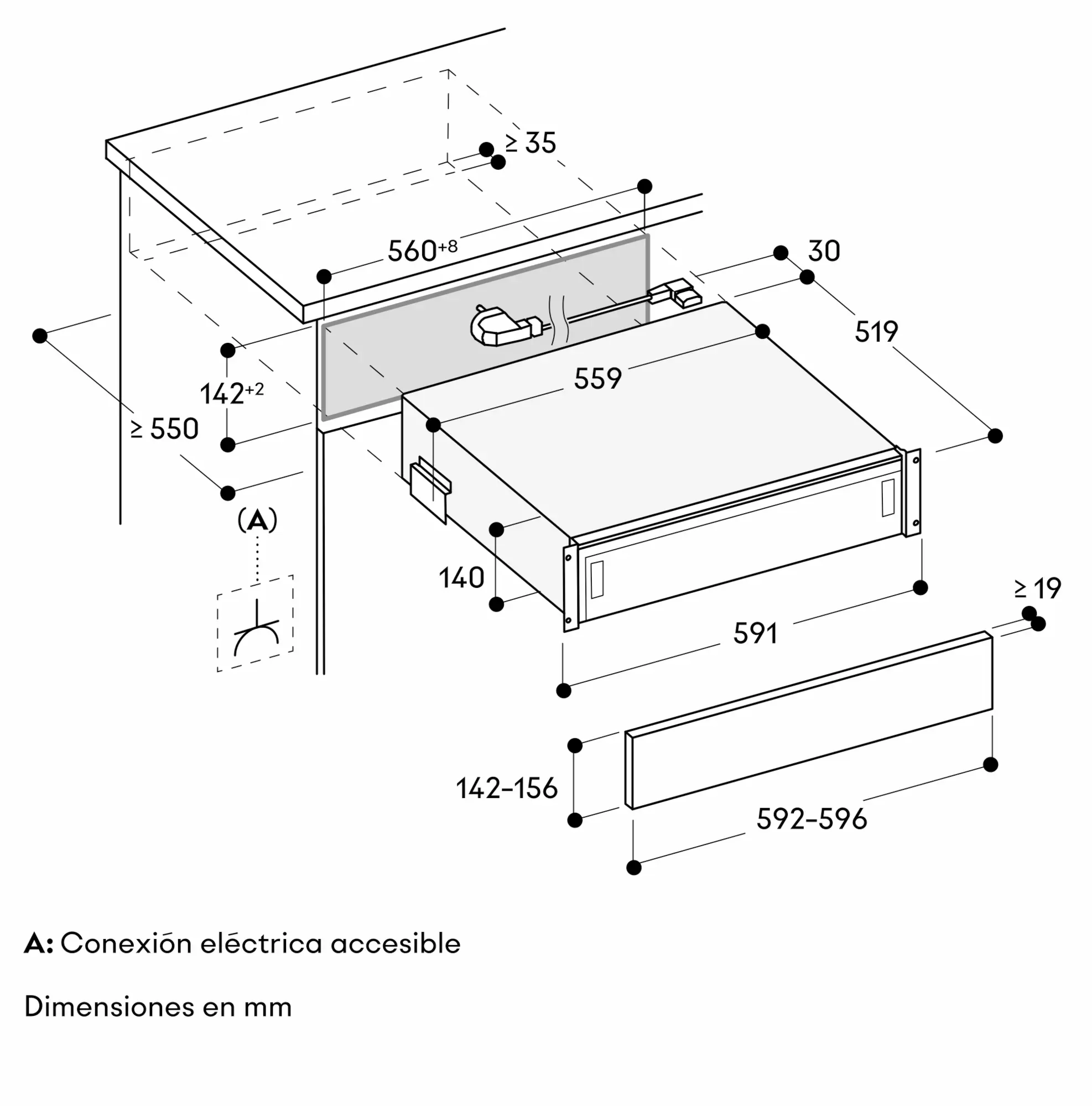 Para instalación sobre lavavajillas se necesita un nicho específico.