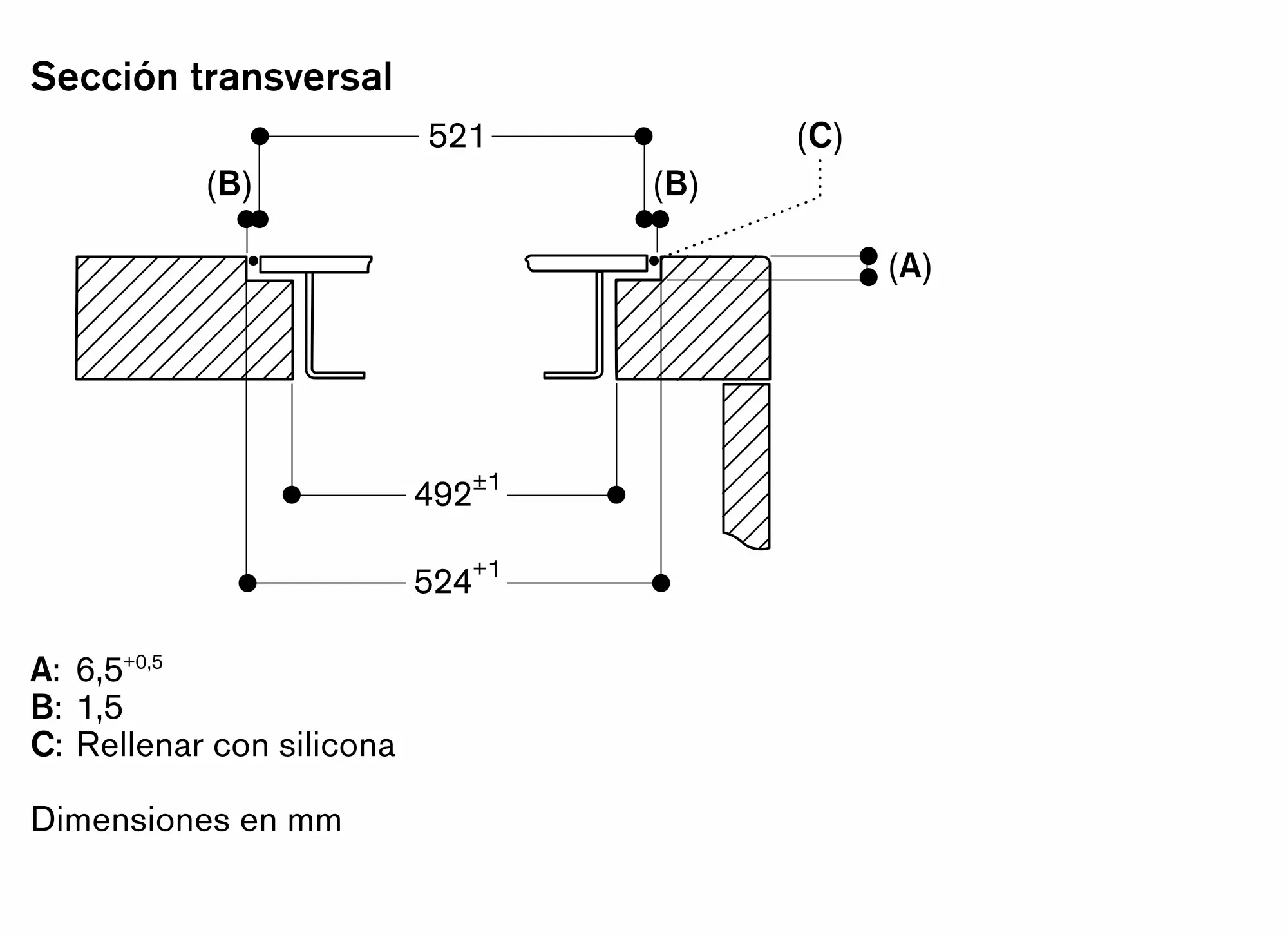 La anchura de la junta puede variar debido a las tolerancias de tamaño de las combinaciones y al hueco de encastre de la encimera.