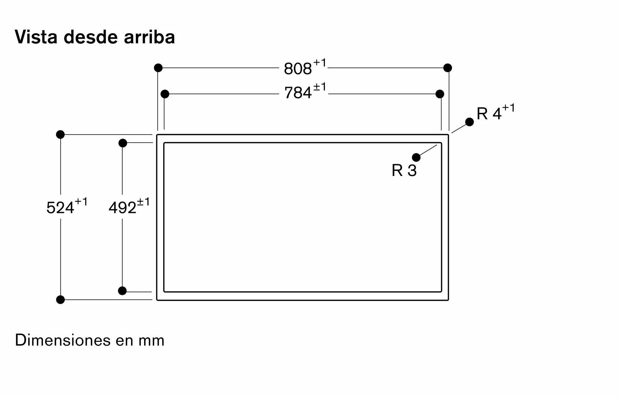 La capacidad de carga y estabilidad, particularmente en el caso de encimeras finas, debe reforzarse mediante subestructuras adecuadas. Tener en cuenta el peso del aparato y las cargas adicionales.