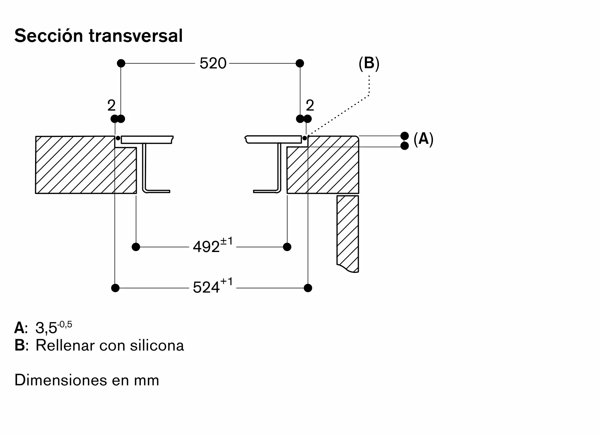La anchura de la junta puede variar debido a las tolerancias de tamaño de las combinaciones y al hueco de encastre de la encimera.