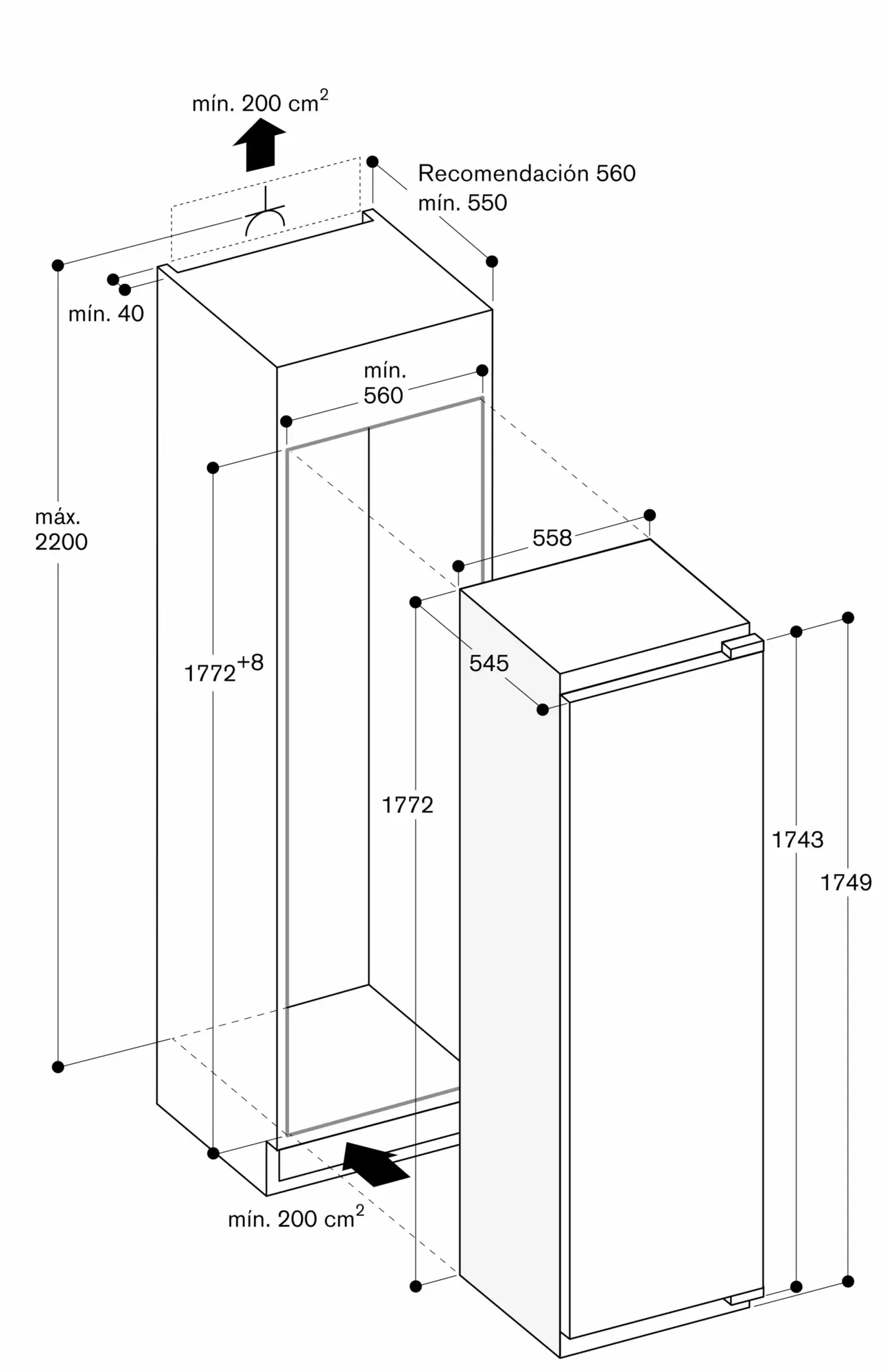 Para una instalación side by side, cada aparato debe planearse con su propio hueco de encastre o mueble columna.