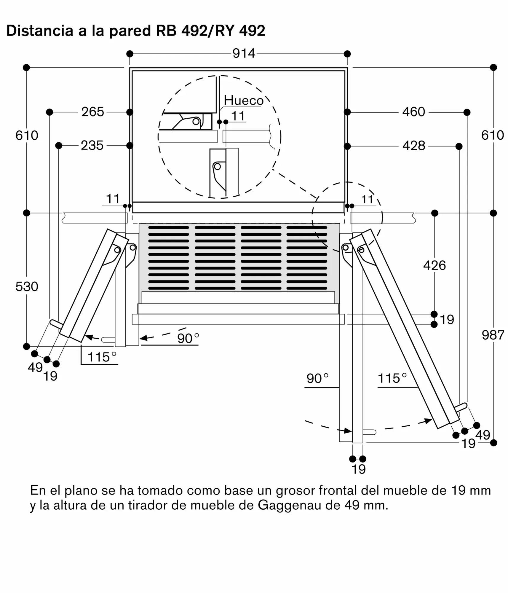 Ángulo de apertura de puerta 115º, se puede fijar a 90º.