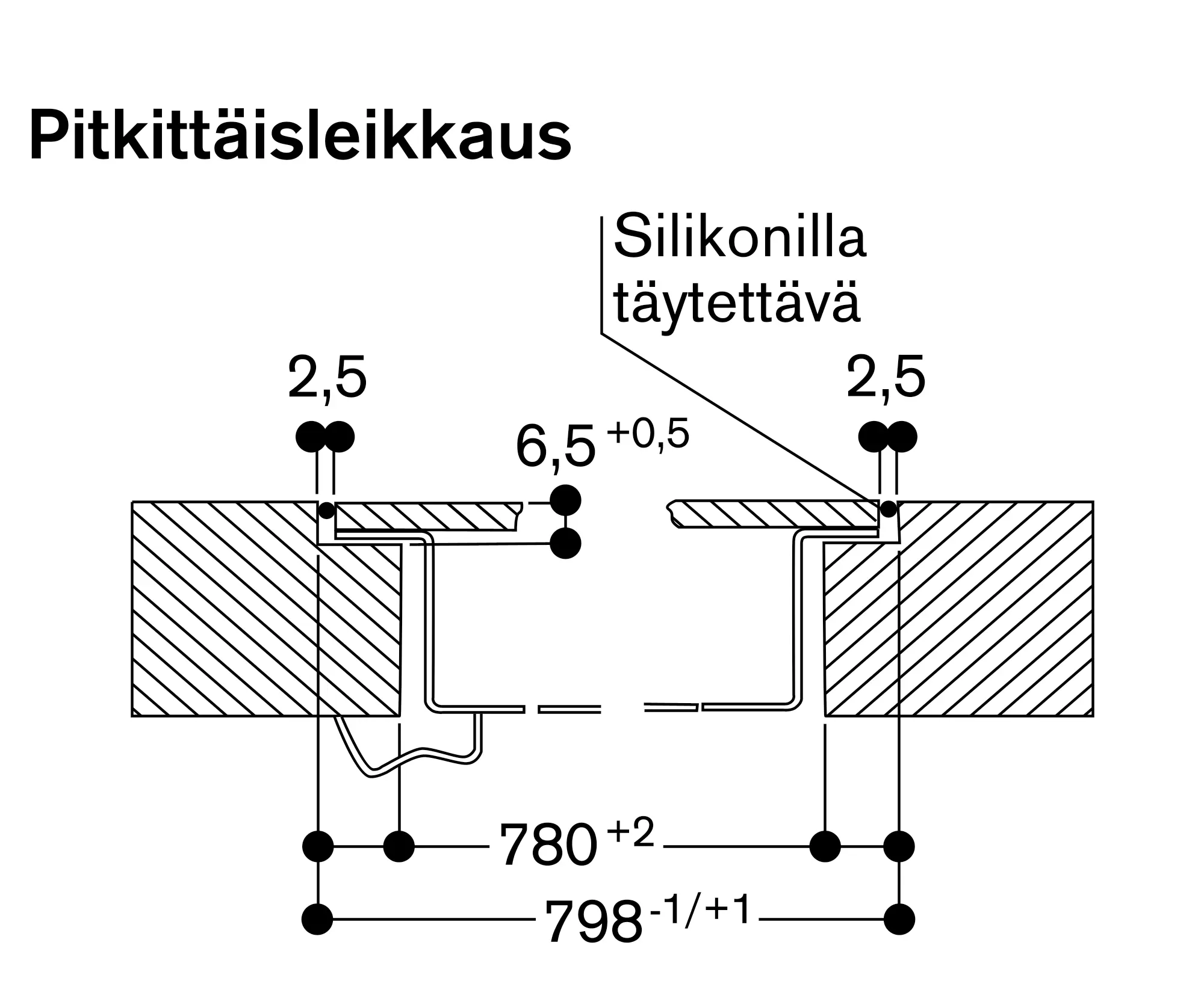 Keramiikkalevyn ja työtasoleikkauksen mittatoleranssien ansiosta saumaleveys voi vaihdella