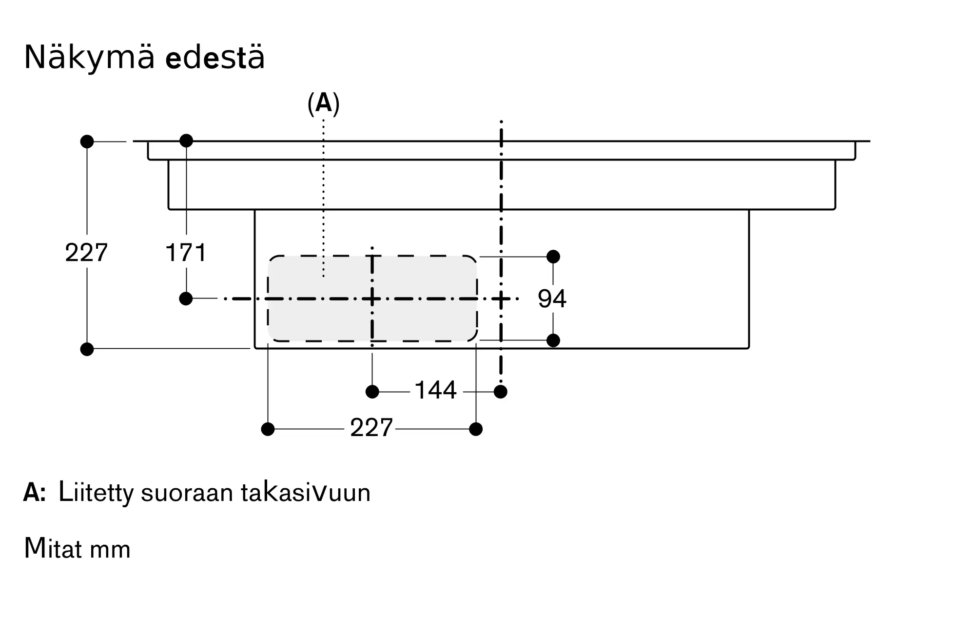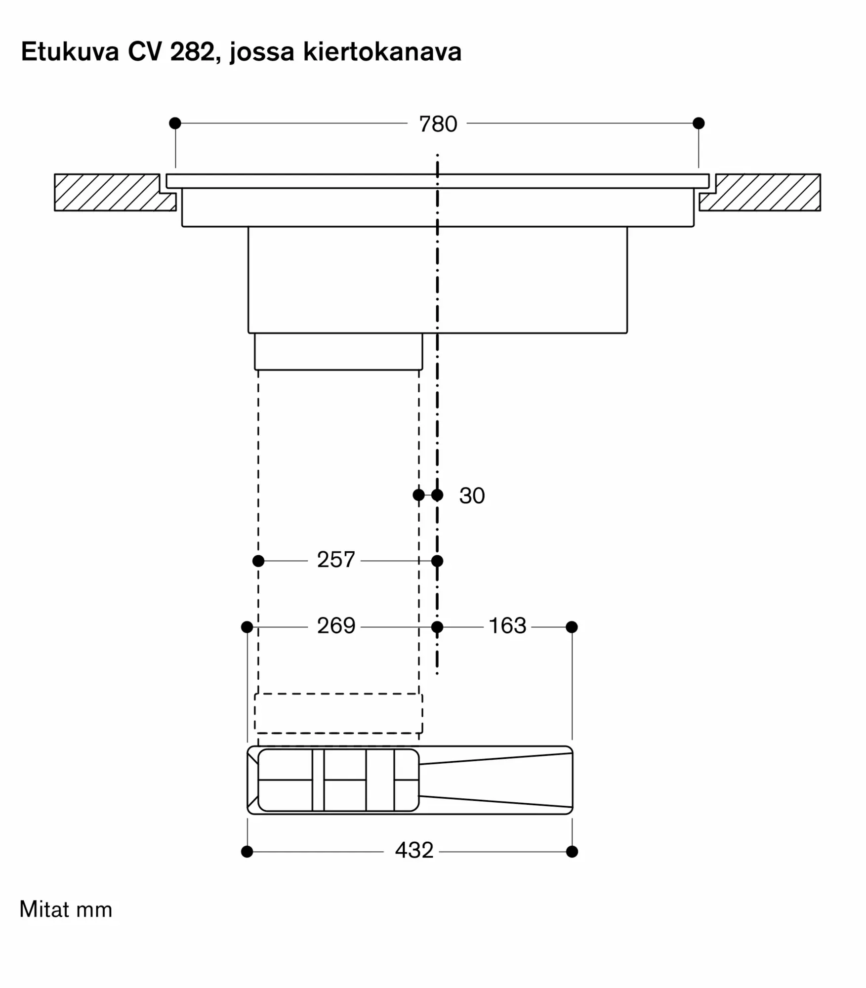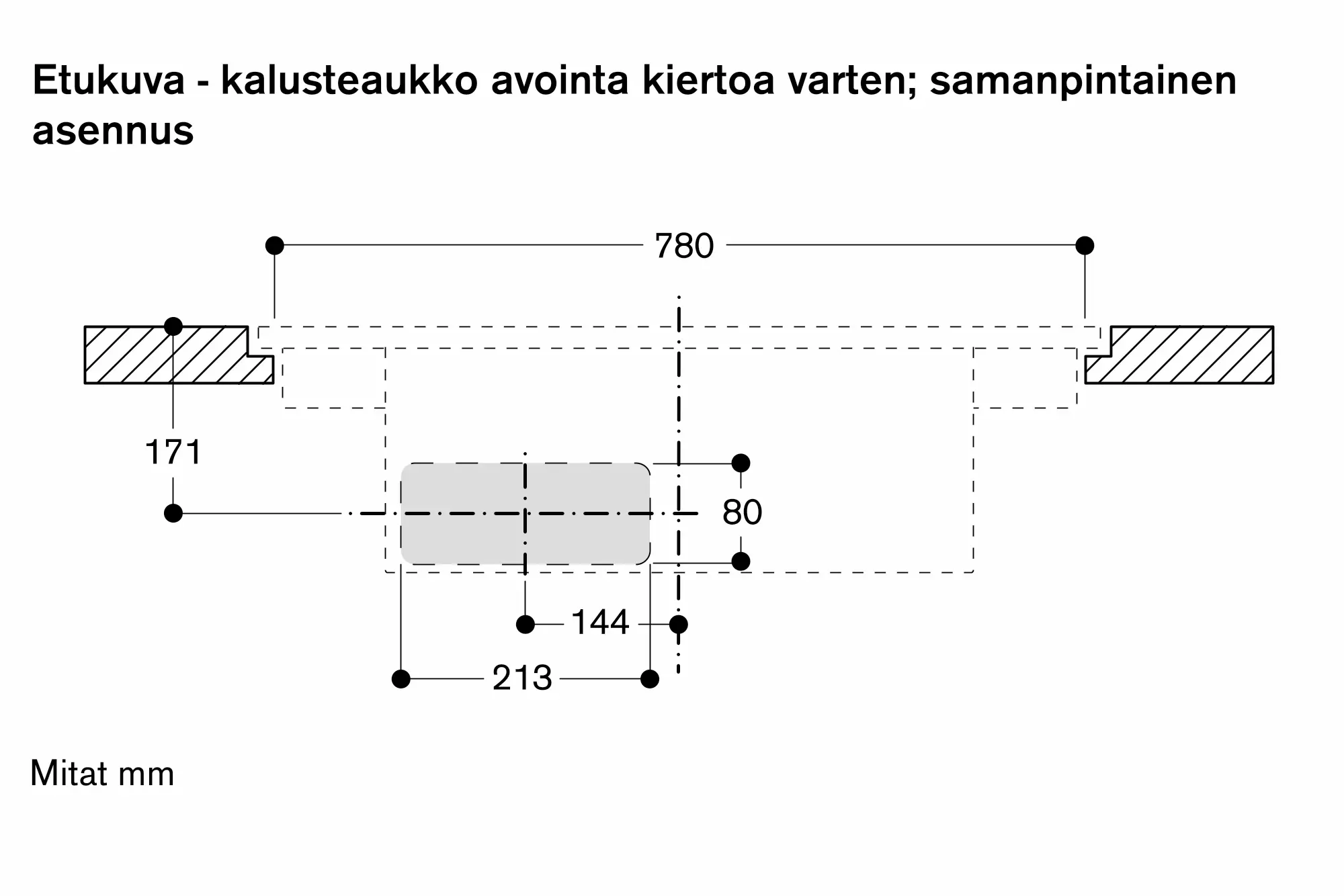 Työtason syvyys: vähint. 60 cm avoimella ilmankierrätyksellä, vähint. 65 cm kanavoidulla ilmankierrätyksellä/poistolla