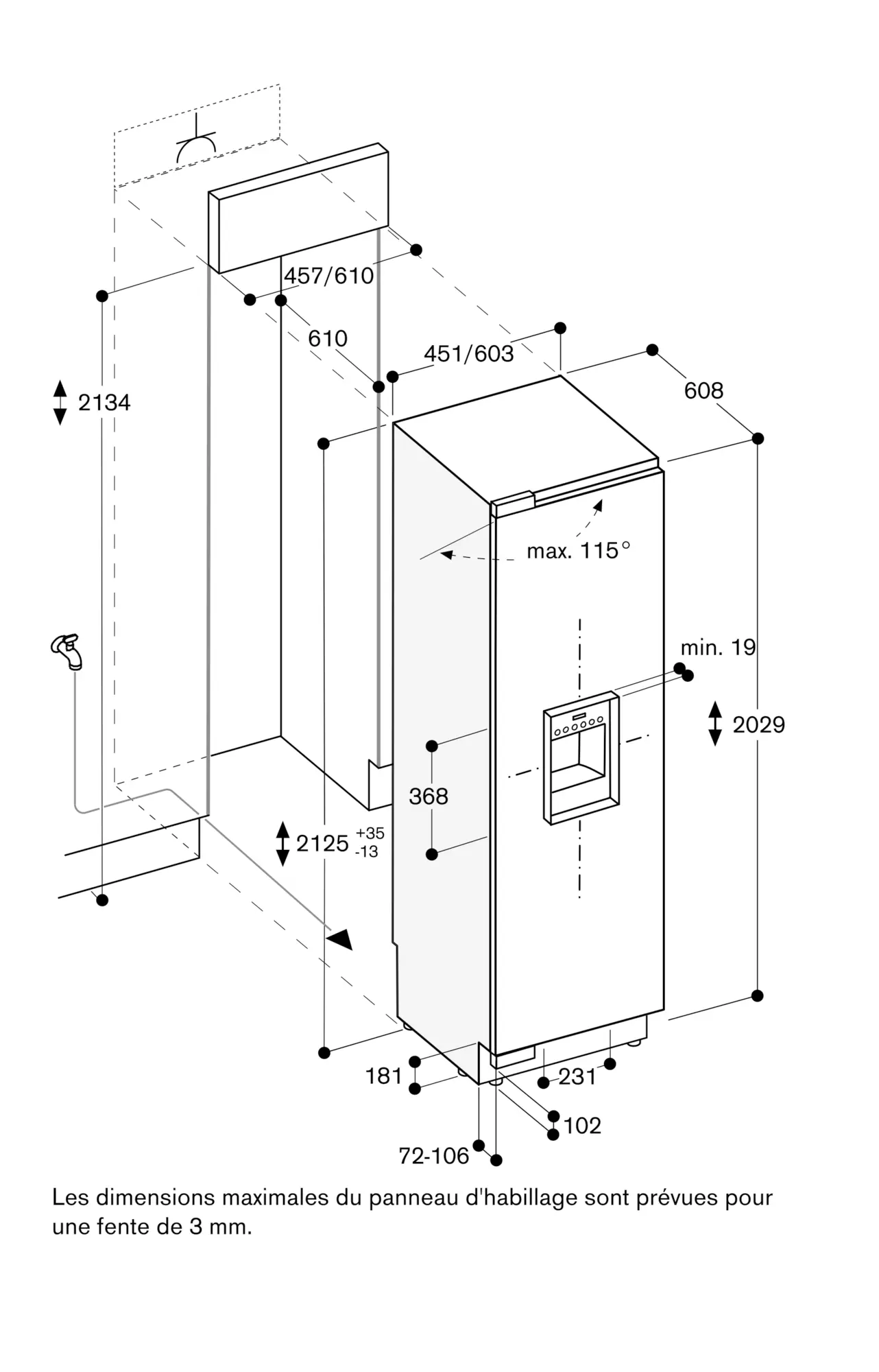 Vanne d'arrêt du raccordement à l'eau doit être placée à côté de l'appareil et rester accessible.