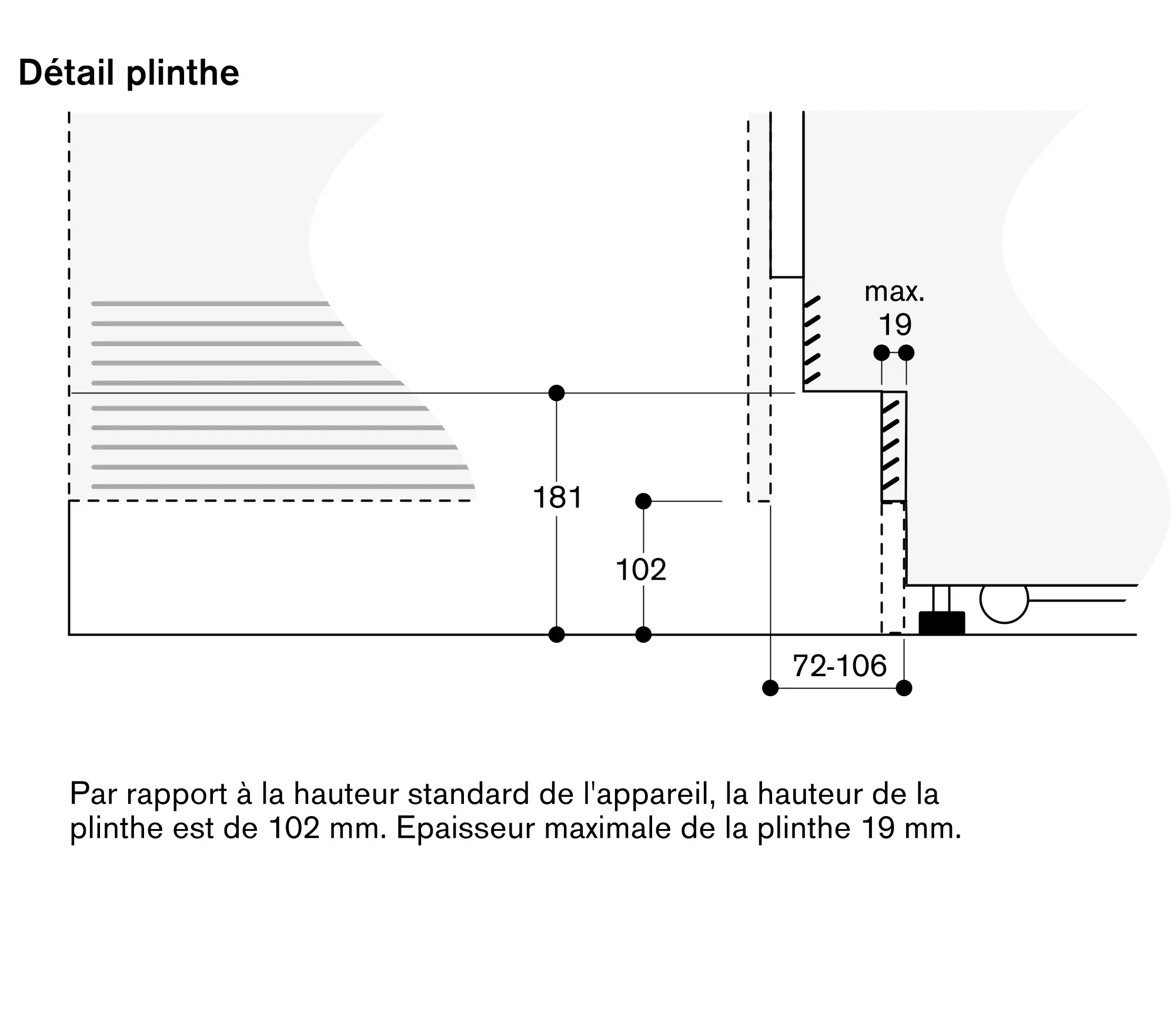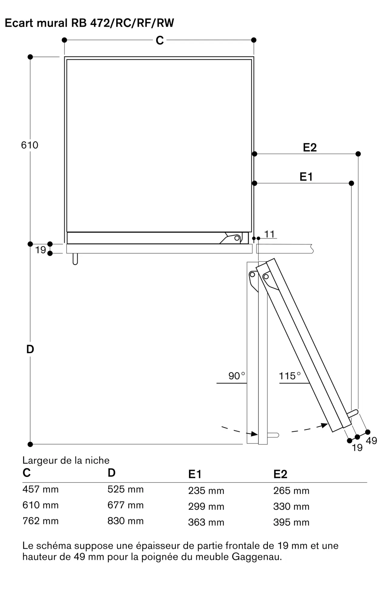 Angle d'ouverture de porte 115°, peut être bloqué à 90°.