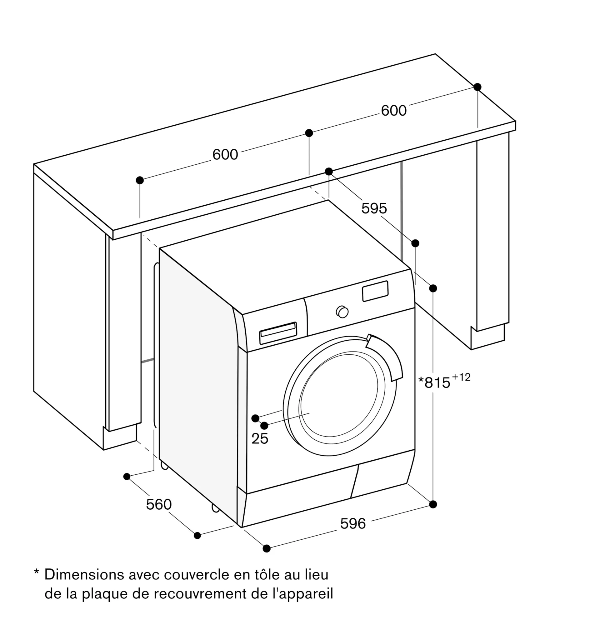 Hauteur pour installation sous-plan : 82 cm.