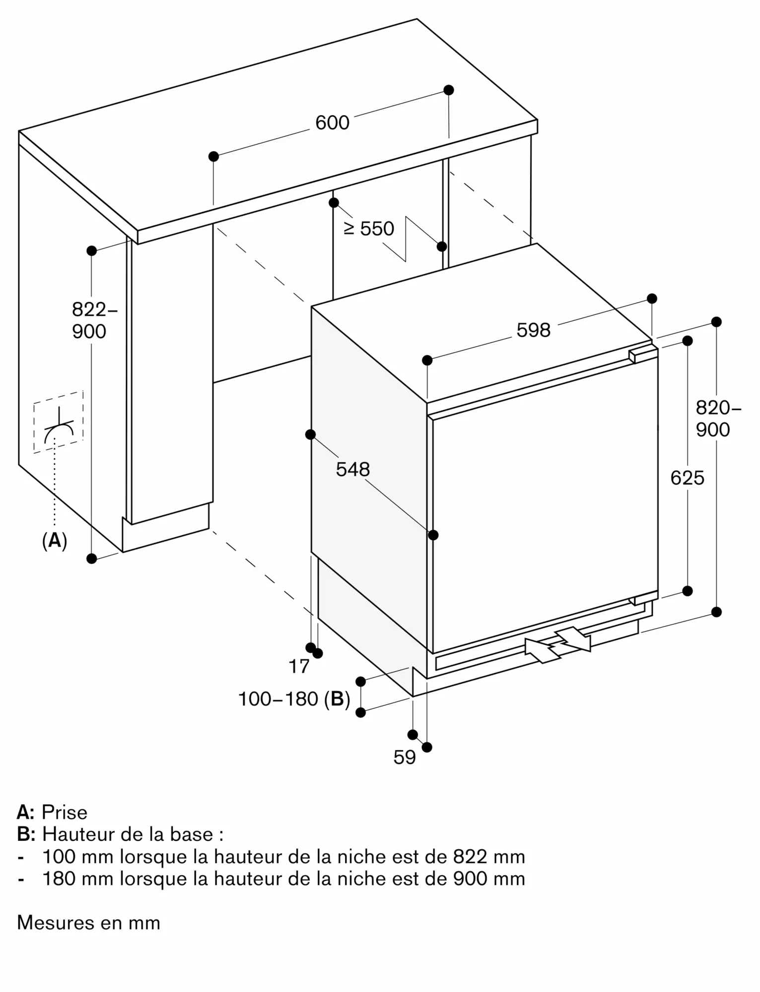 Série 200 Réfrigérateur sous-plan intégrable 82 x 60 cmRC202180