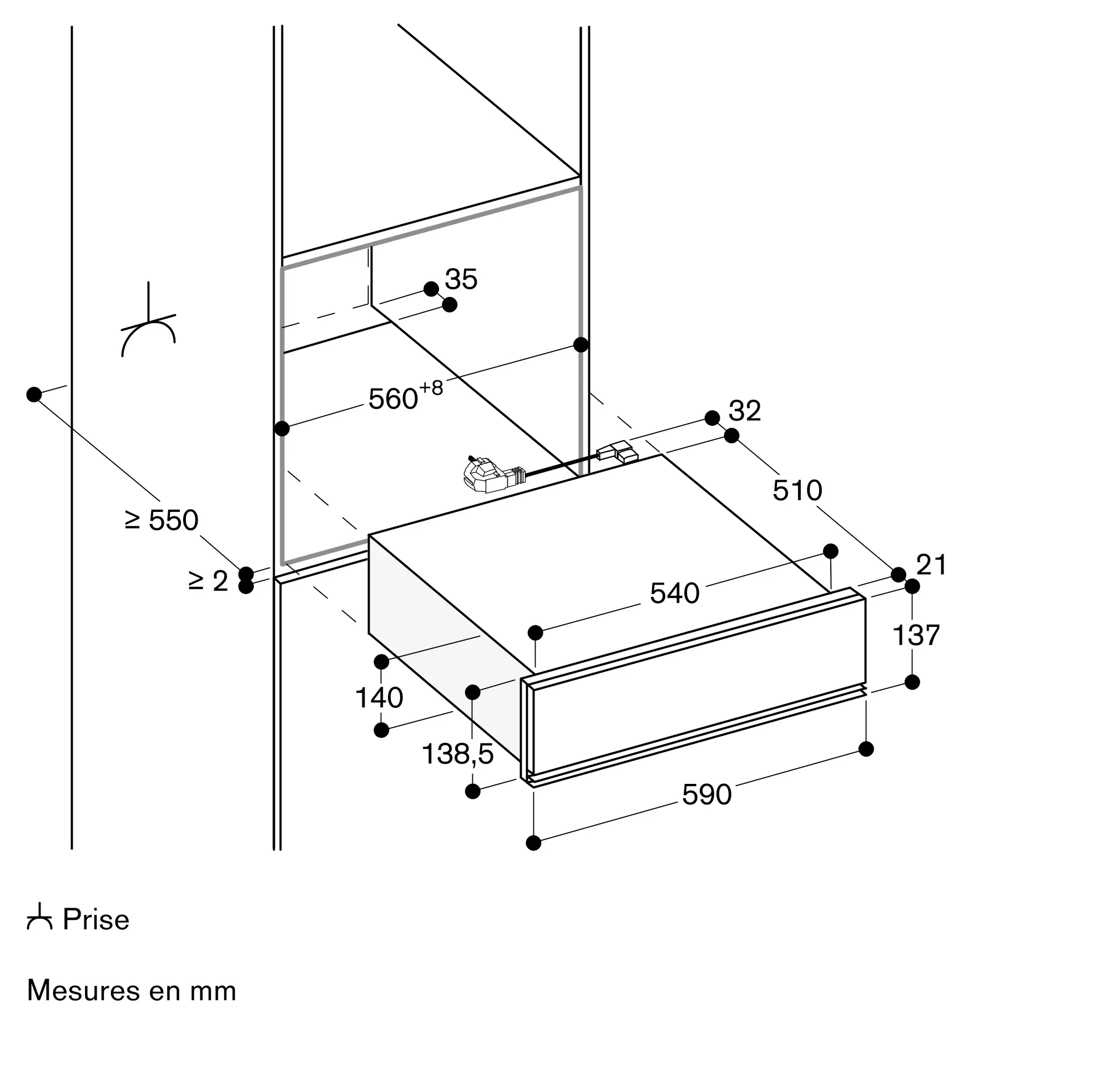 Intégrable dans une niche de meuble hauteur 14 cm.