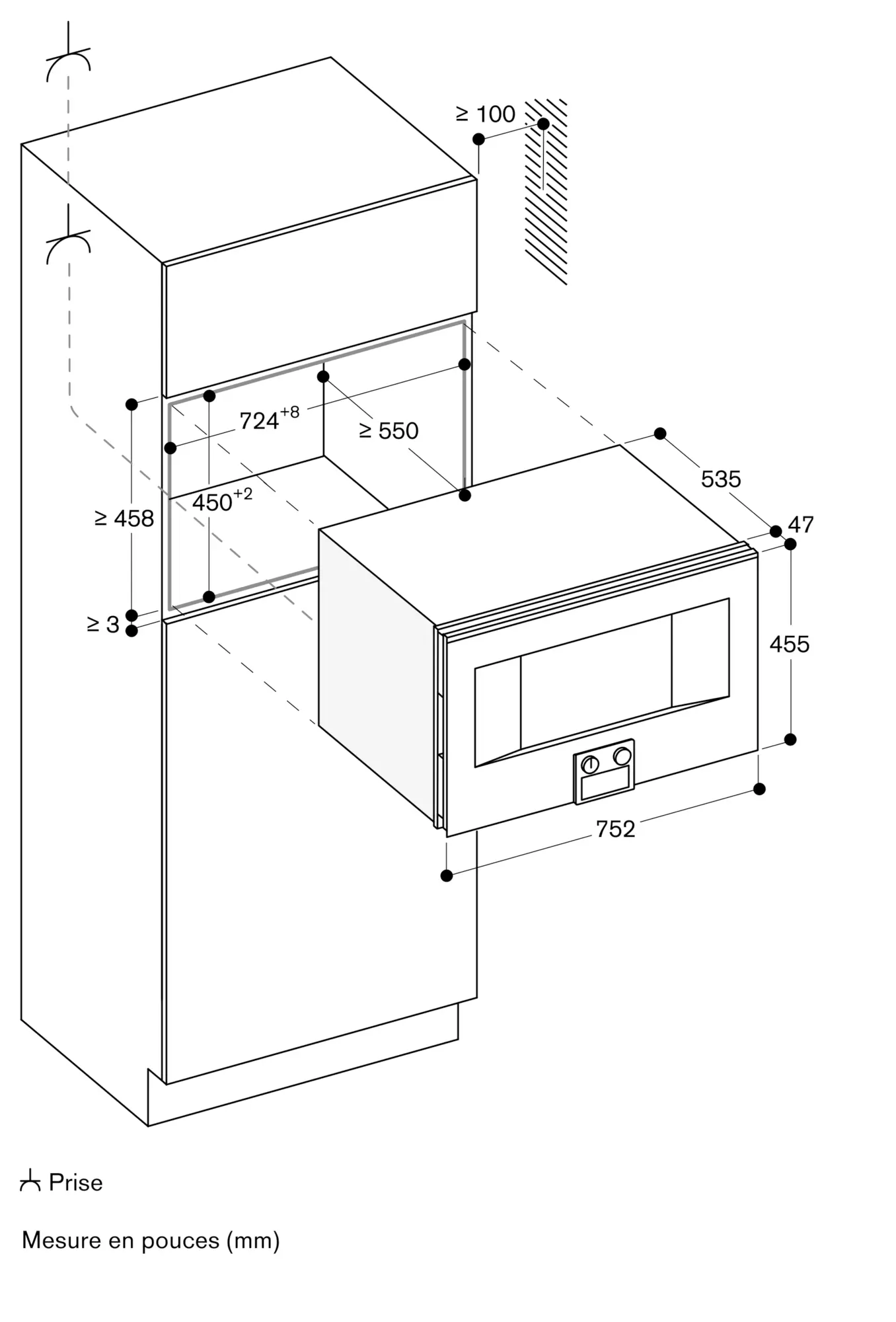 La prise de raccordement doit être placée en dehors de la niche d'encastrement.