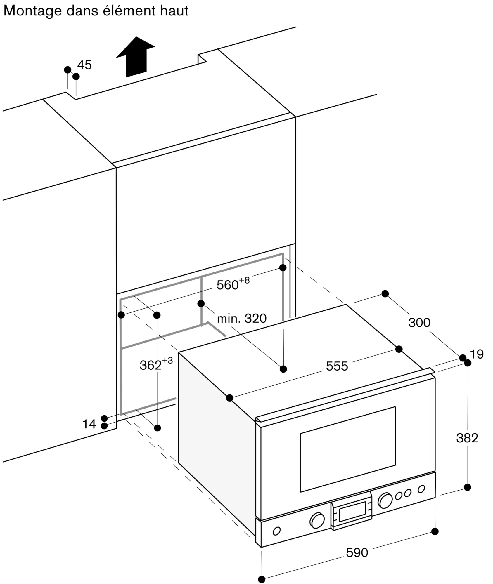 Encastrable au-dessus du four à l'aide d'un cadre d'encastrement. Design assorti aux fours : BO 22./21.