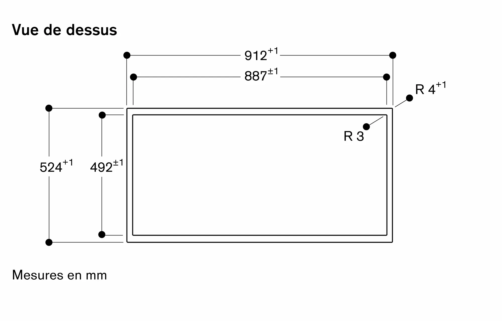 Selon le type d'installation (sur le plan avec cadre apparent ou à fleur de plan), respecter les spécificités des découpes.