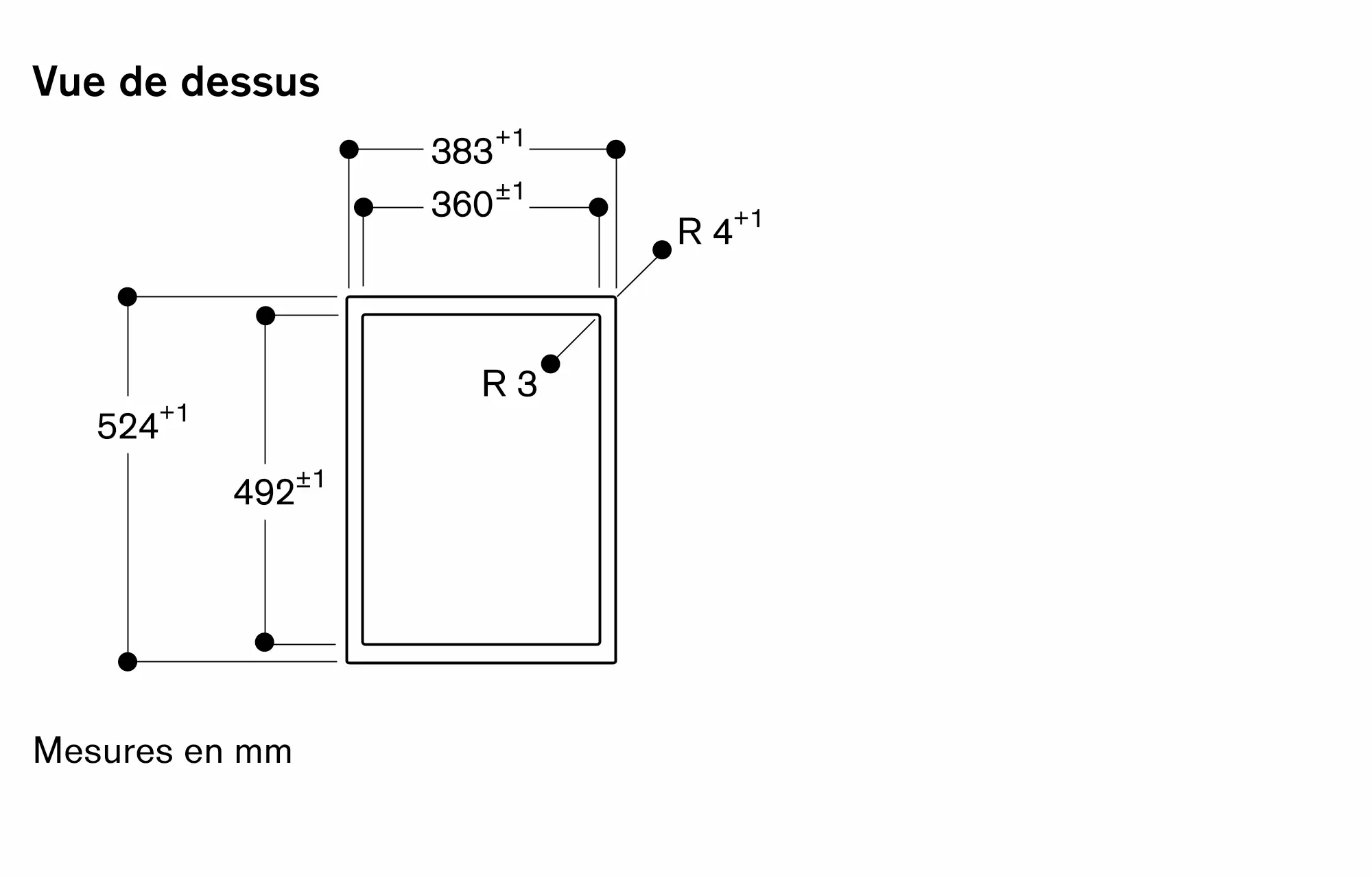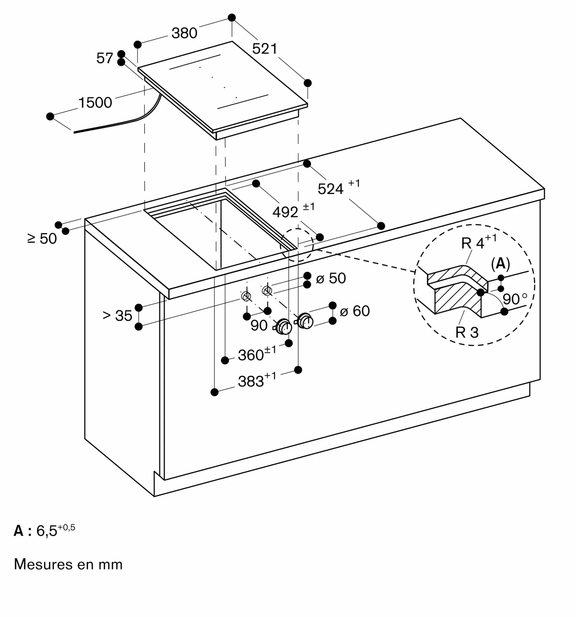 L'appareil s'intègre dans le plan de travail par le dessus.