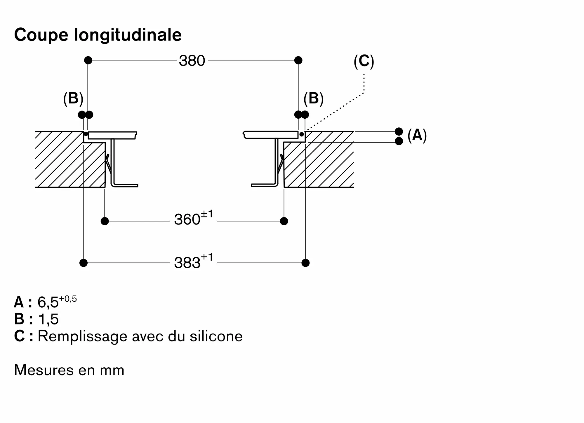 La largeur de la jonction dépend de la tolérance entre les appareils et la découpe du plan de travail.